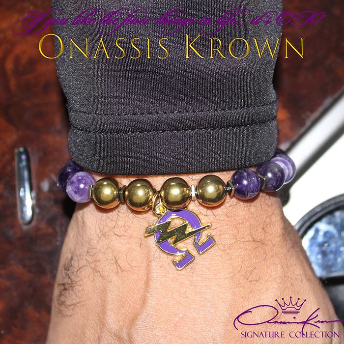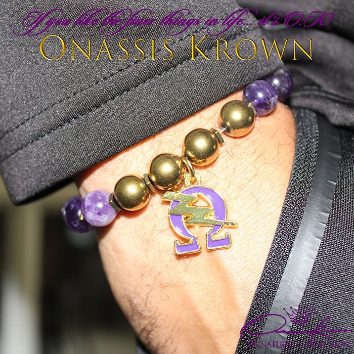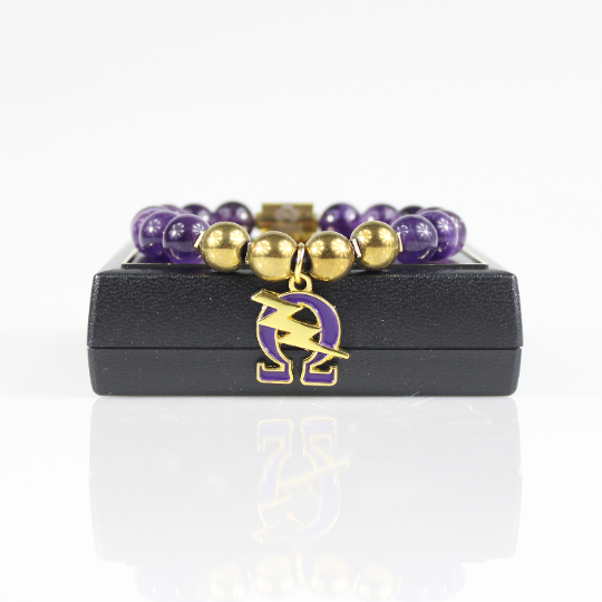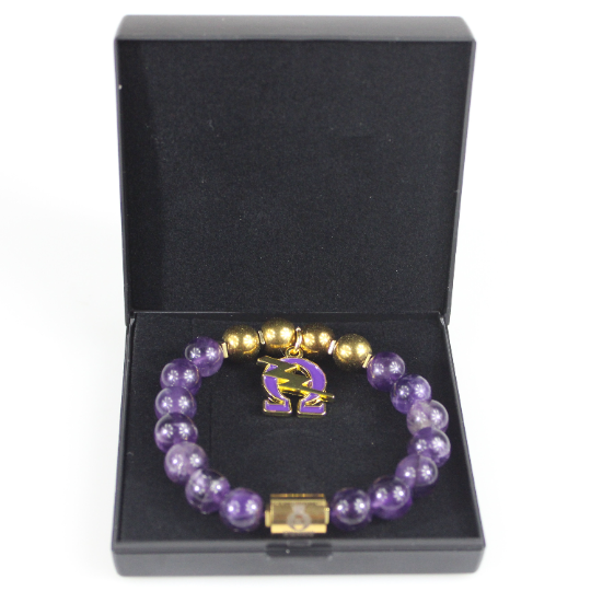 This stunning Men’s Beaded Bracelet is in honor of Omegas. You have the option of the greek letter Omega with Lightning Bolt Charm or no pendant.