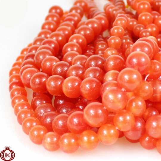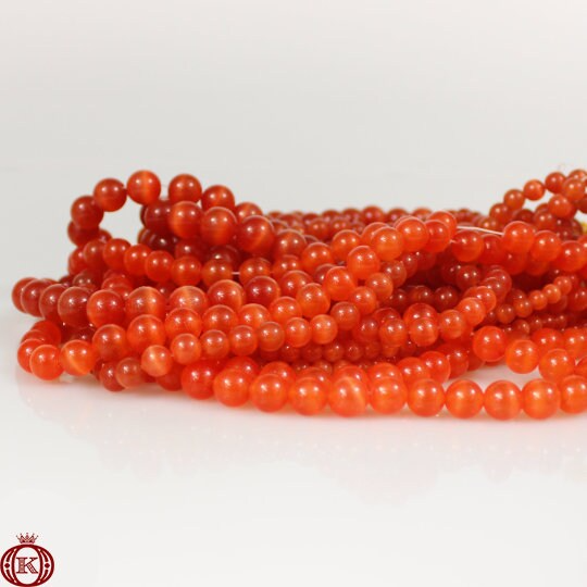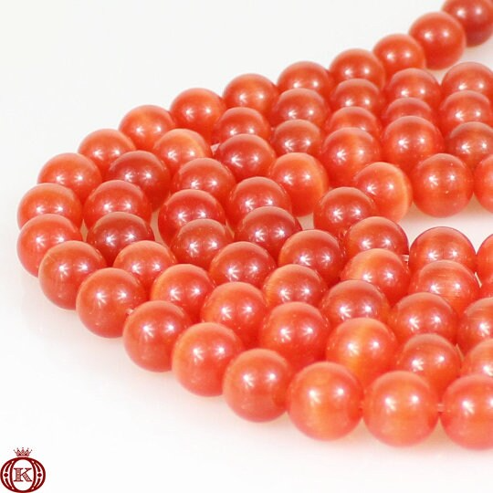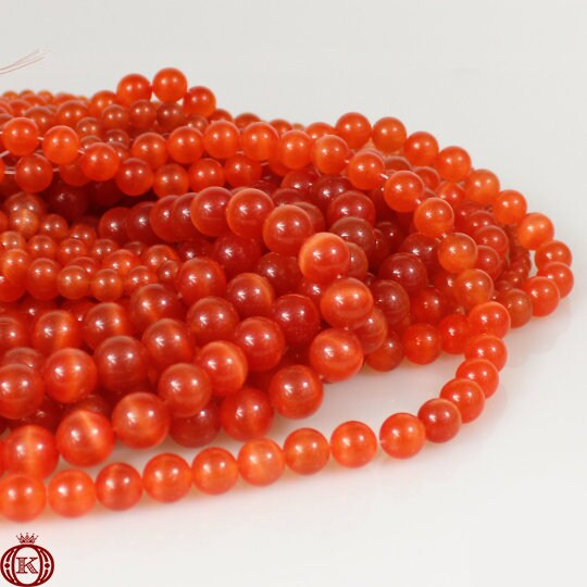 Orange Cats Eye Beads Smooth Round