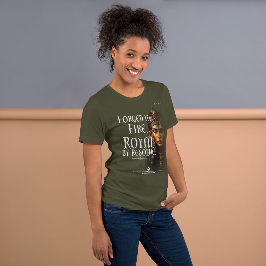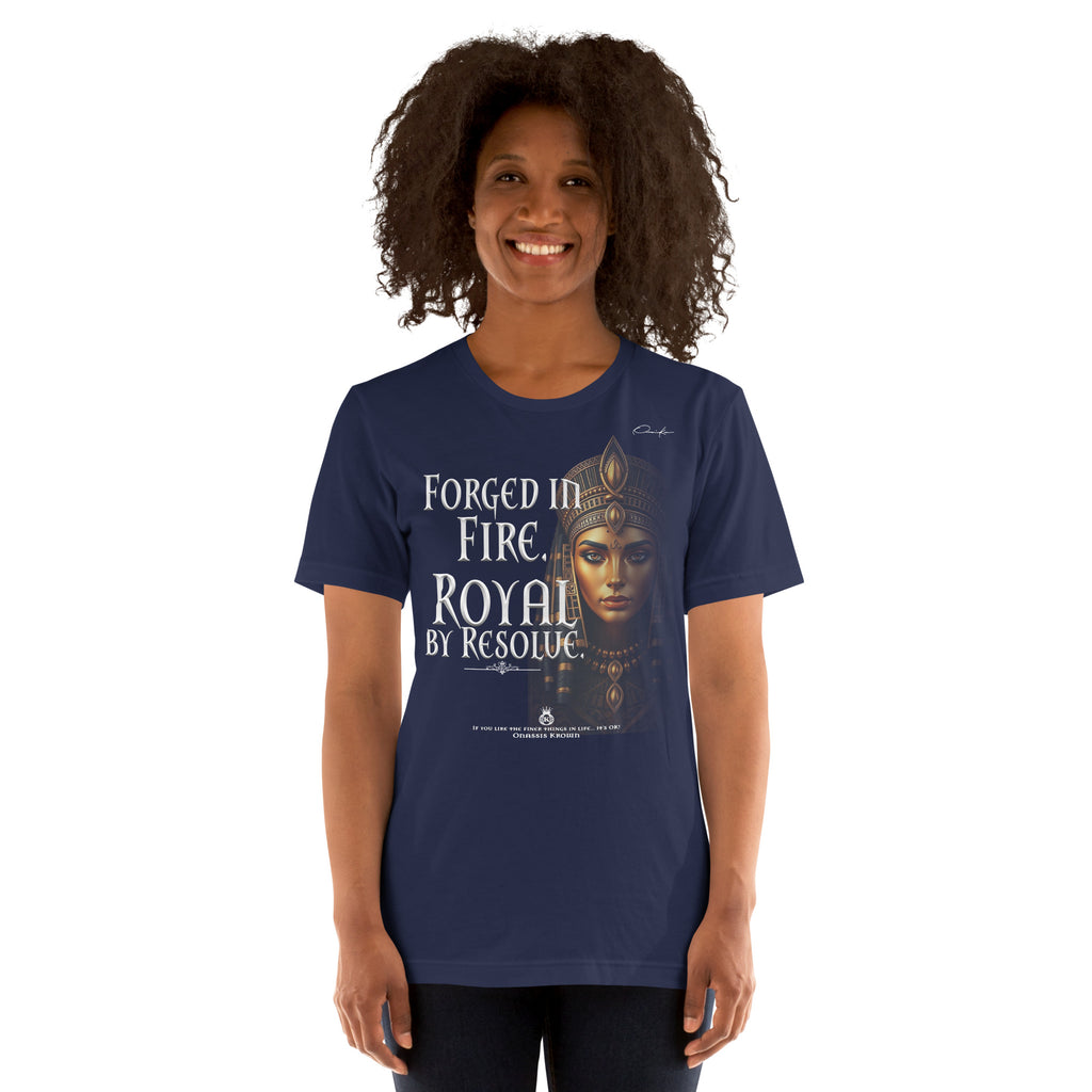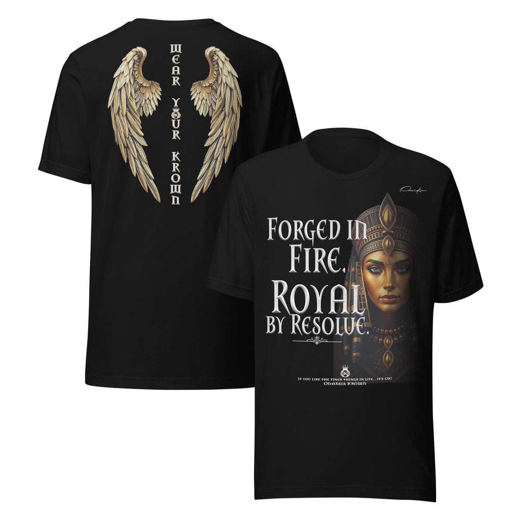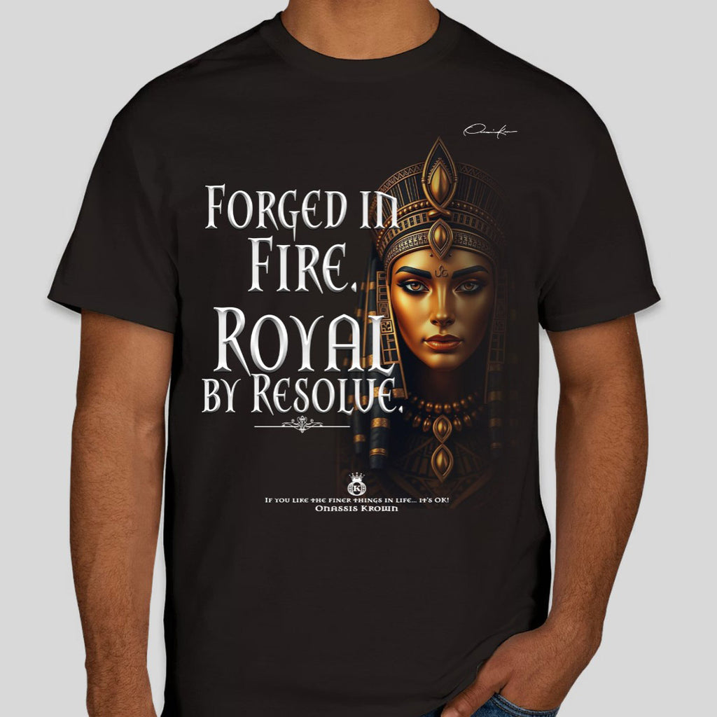 The “Forged in Fire. Royal by Resolve.” T-Shirt from our Kemet Series Collection is a bold tribute to those who rise through adversity and claim their power with intention.