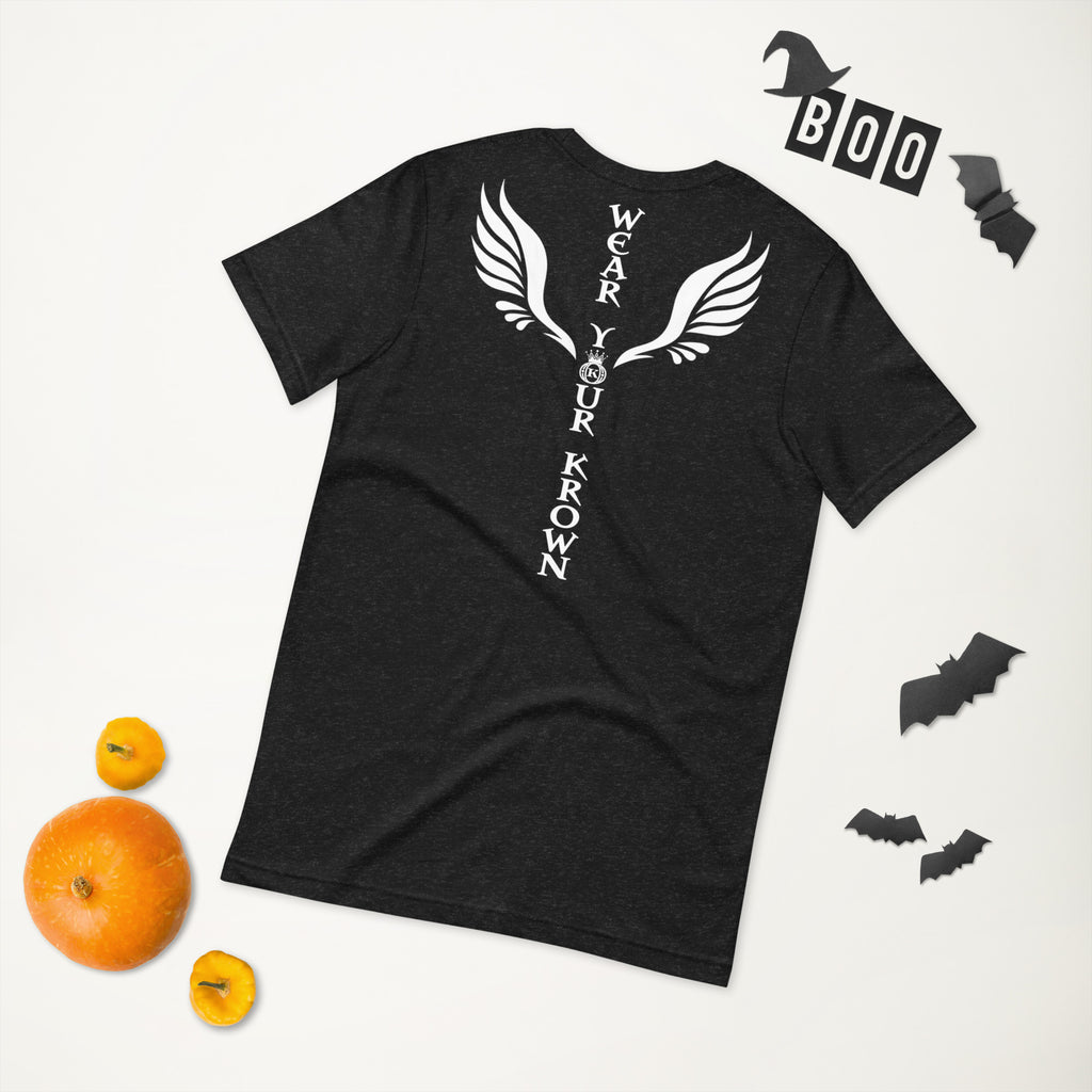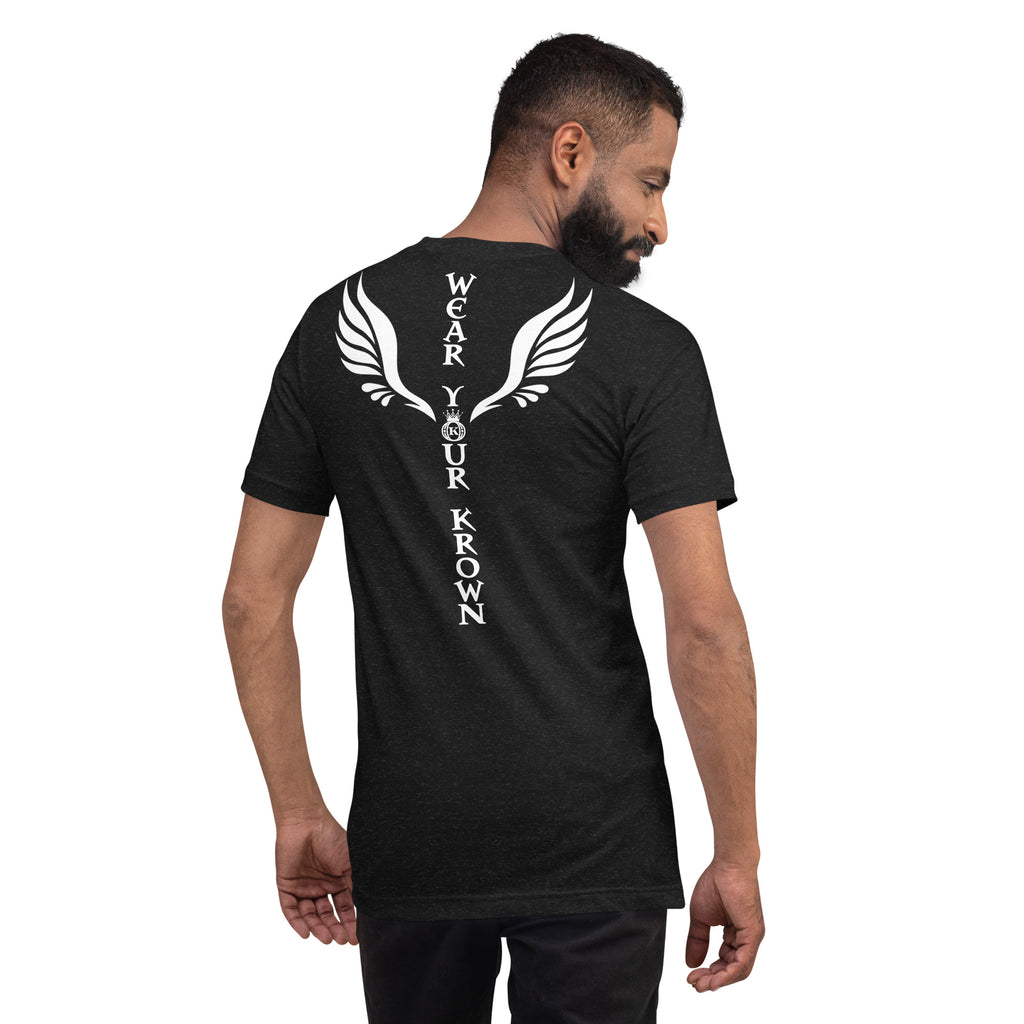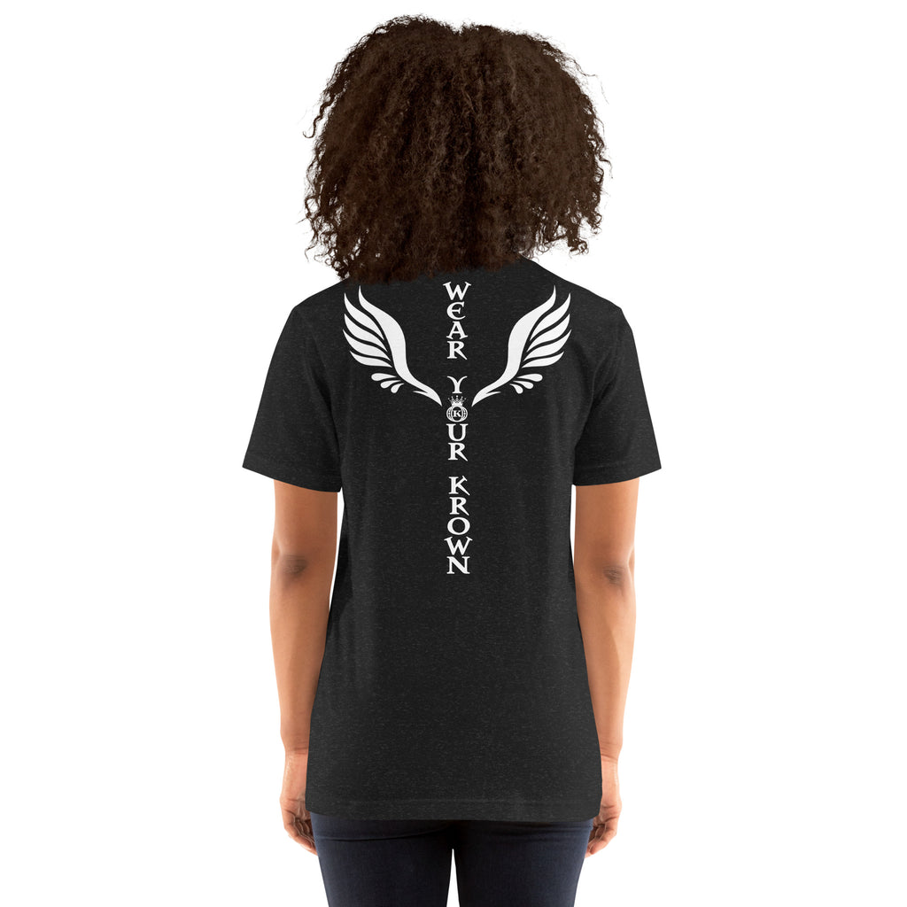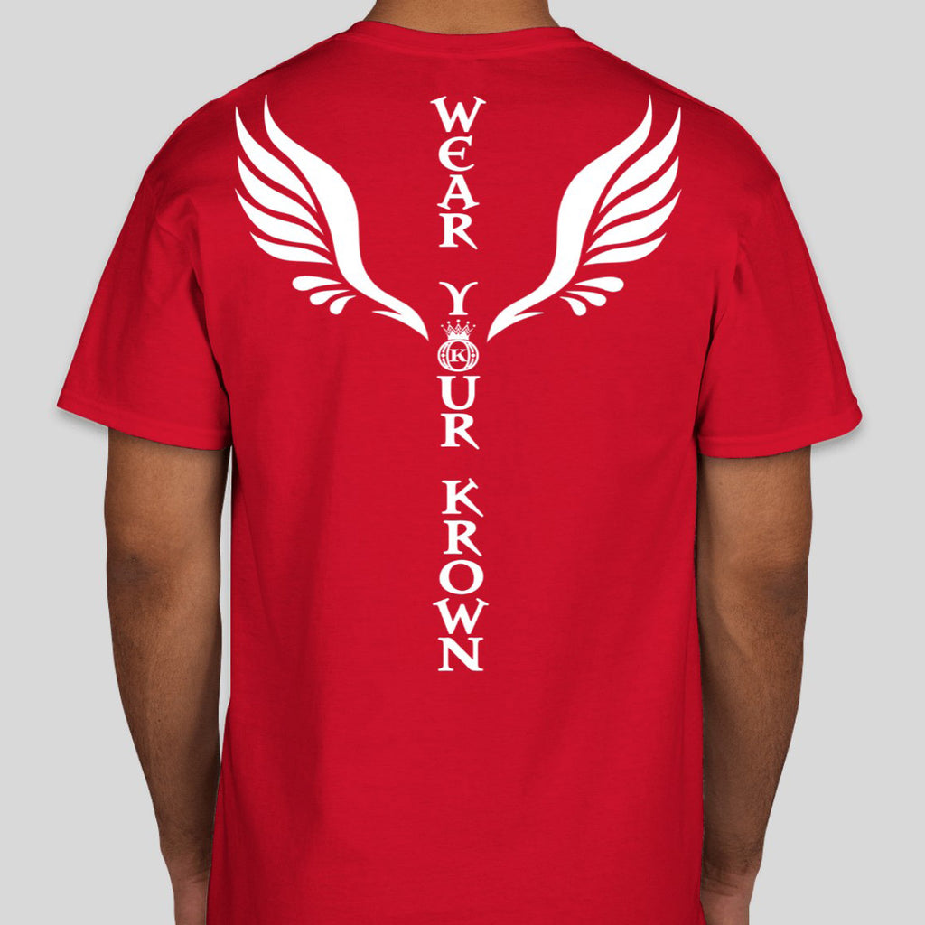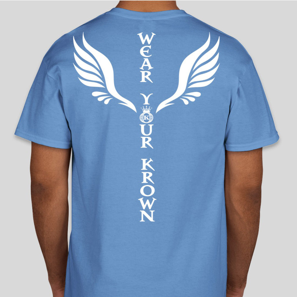 - Back Design: Vertical “Wear Your Krown” with wing accents — representing elevation, freedom, and purpose