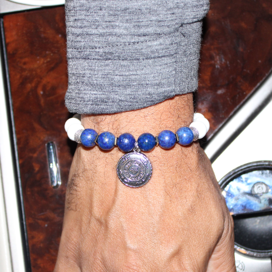 Lapis Lazuli & White Porcelain Bead Bracelet