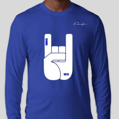 Sigma Hand Sign shirt by Onassis Krown in Blue, White or Black with the OK signature brand over the top right chest for Sigma men! Be one of the first in your frat, chapter or on the yard to sport this original!