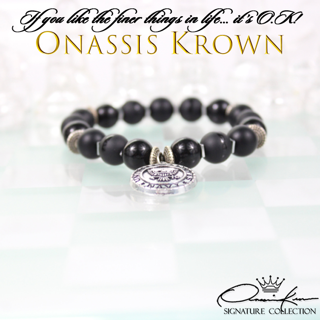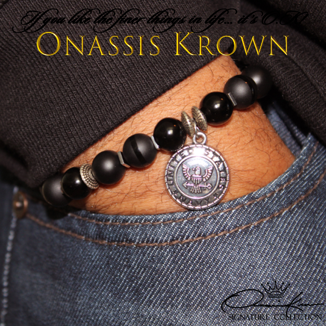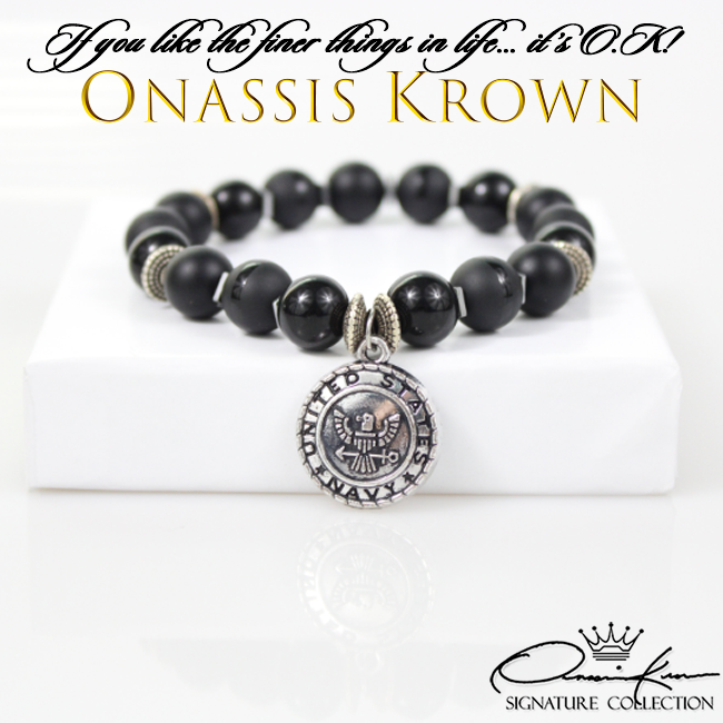 This bracelet was created to honor our active duty military veterans. It is specially designed to not only be beautiful but to provide protection for soldiers on deployment. It is made with Black Onyx, Black Matte & 10mm Black Jade Beads with Polished Stripe Bracelet. Also has antique silver spacers, silver hematite and an Antique Silver Charm with your choice of Branch of Service.