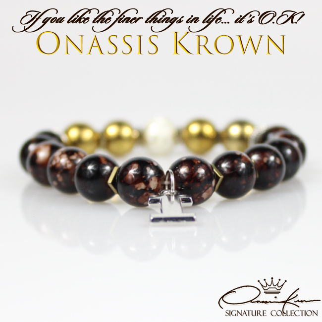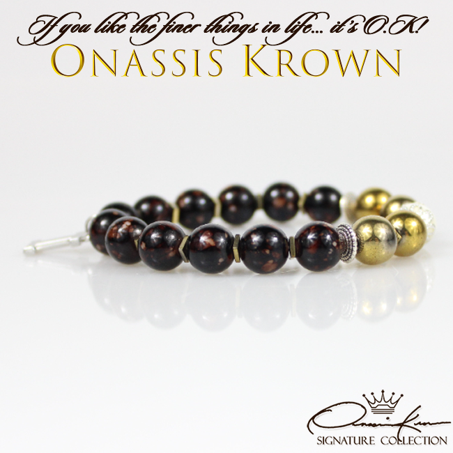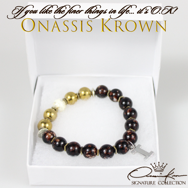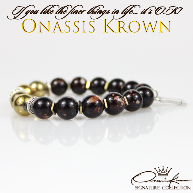 The other side has 4 metallic gold beads with polished stripes and a silver-capped cream center bead. Enjoy a classy array of brown & gold in this "One Of A Kind” piece. All bracelets come in a gift box!