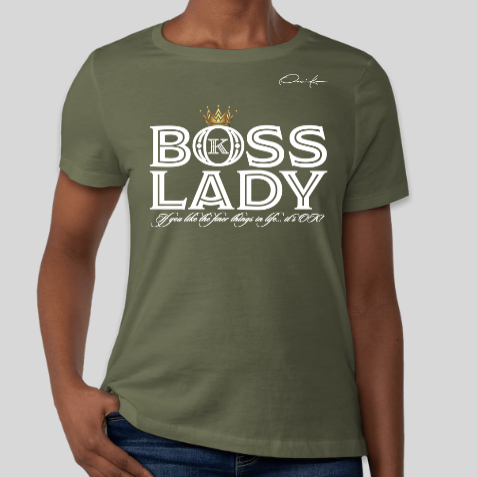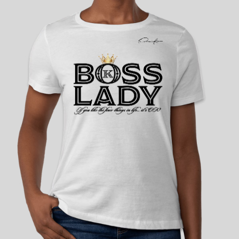B0$$YLady T-Shirt by Onassis Krown! If you are in charge, a b0$$ in the making or want a perfect gift for your BO$$ then this is the high-quality shirt you want! Has the WEAR YOUR KROWN spinal graphic on the back in your choice of color.