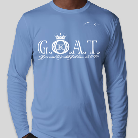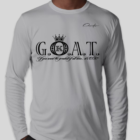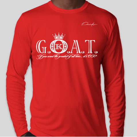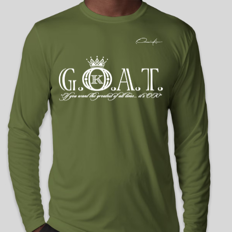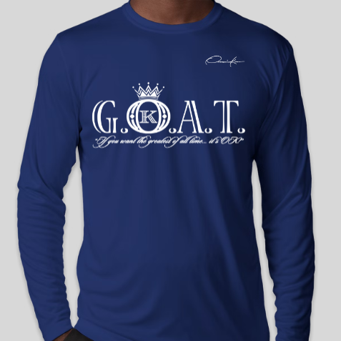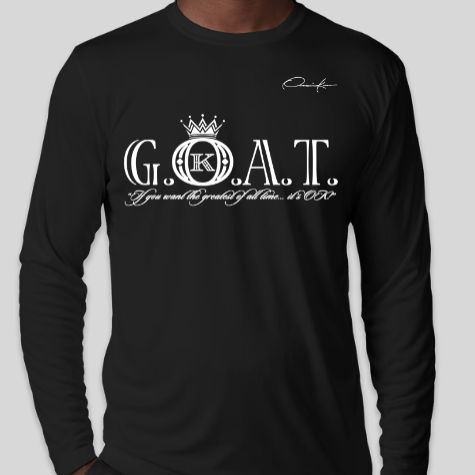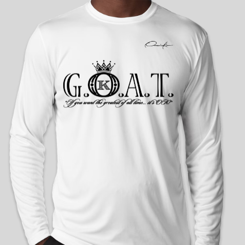 G.O.A.T. (greatest of all time) long sleeve shirt with the official Onassis Krown signature on the front chest over the heart and vertical, angel wings spinal cord logo on the back. If you strive for greatness and to be the goat then this shirt is for you. If you don't see the Onassis Krown label on the inside then it's NOT official! "If you want the greatest of all time... it's OK!"