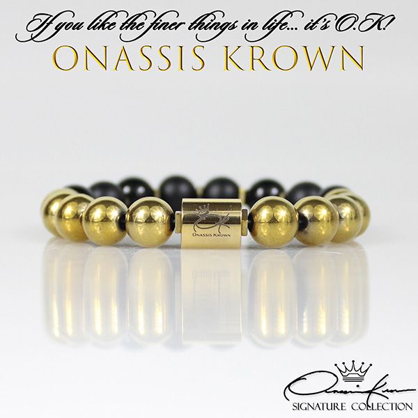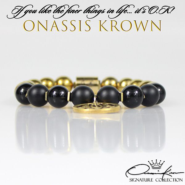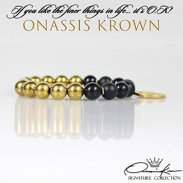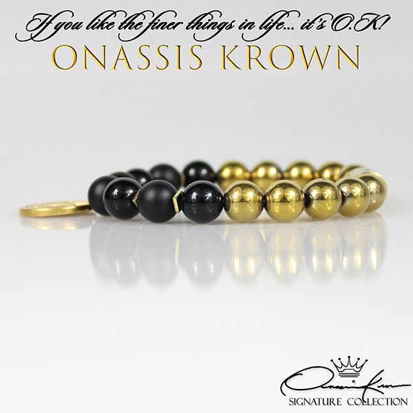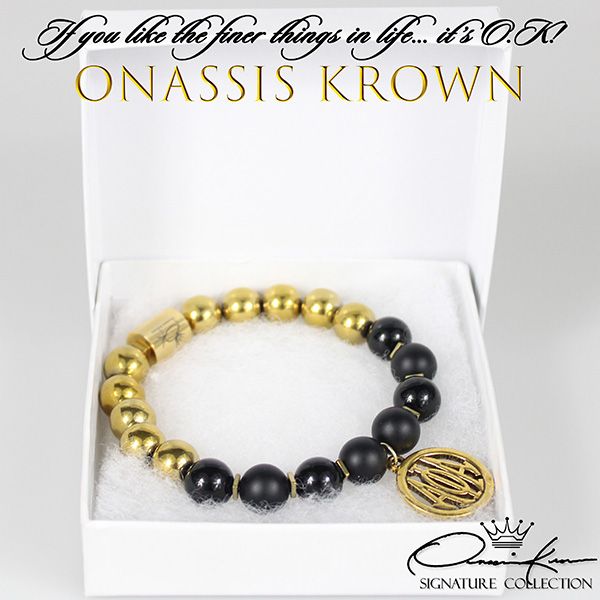 Boasts alternating 10mm matte & shiny black onyx beads and gold hematite beads! Enjoy a classy array of black & old gold in this "One Of A Kind” piece. All bracelets come in a gift box!
