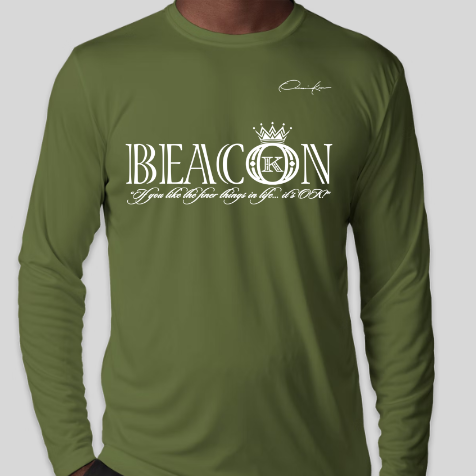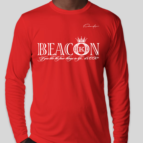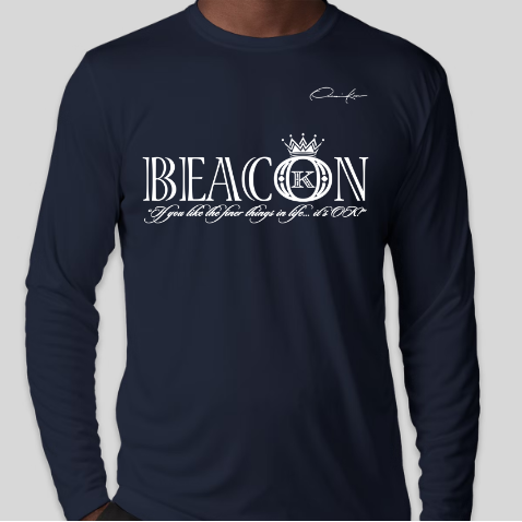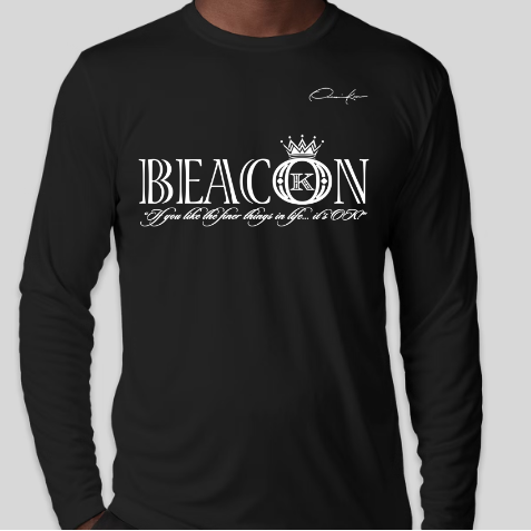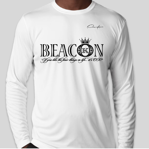 Beacon long sleeve T-Shirt with the official Onassis Krown signature on the front chest over the heart and vertical, angel wings spinal cord logo on the back. A beacon is a fire or light set up in a high or prominent position as a warning, signal, or celebration. If you don't see the Onassis Krown label on the inside then it's NOT official! "If you like the finer things in life... it's OK!"