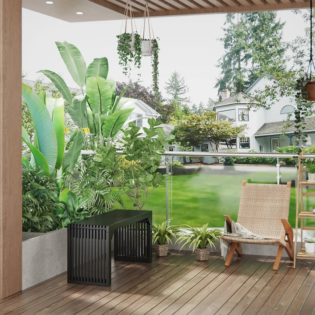 This is a beautiful solid wood entryway bench with black finish. And this is an waterproof outdoor bench with a waterproof coating.