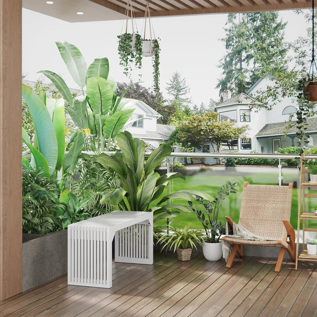 The versatile wooden bench that can be used as entryway bench, shoe bench, sofatable, shower bench, bedroom bench, dining bench, garden bench, patio bench, outdoor bench. A grille style wooden bench, sleek lines, distinctive look and rustic style. It is a perfect piece for your home.