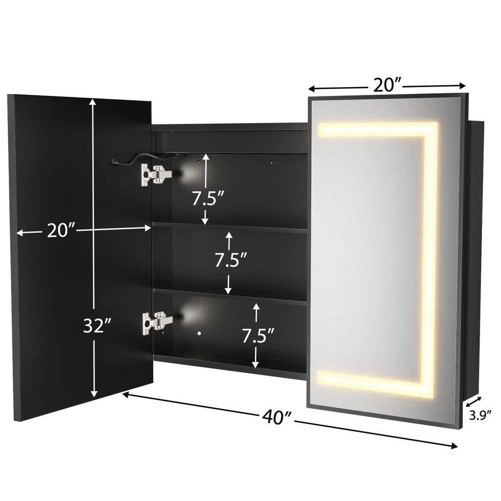 • 【Lighted Bathroom Mirror Medicine Storage Cabinet 2-in-1】The bathroom cabinet with mirror has 3 levels of storage space, using thickened metal shelves, with a maximum load capacity of 77lb, easily and neatly store all your bathroom essentials, such as makeup tools, toothbrushes, cosmetics, Shaver etc. 4MM copper-free mirror, super bright CRI>90, high density 120 LEDS/m, so the light is bright enough for makeup, shaving or beauty care. No darkness, no shadows, super clear.