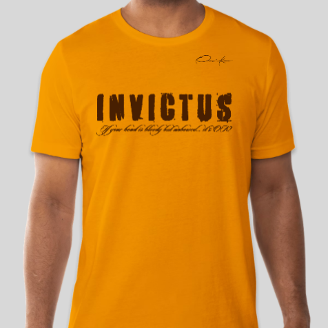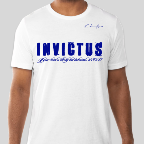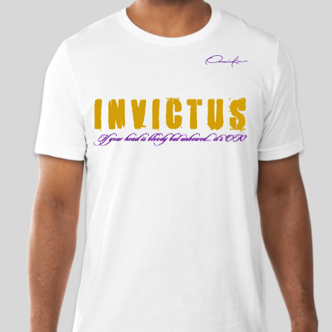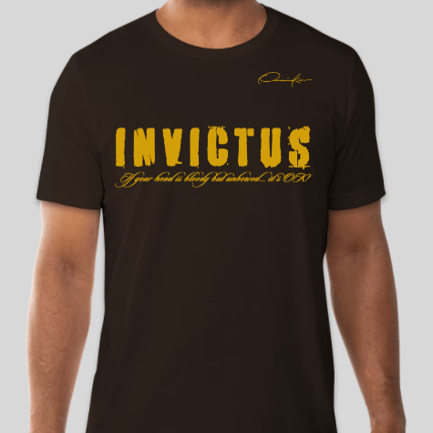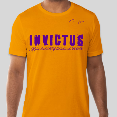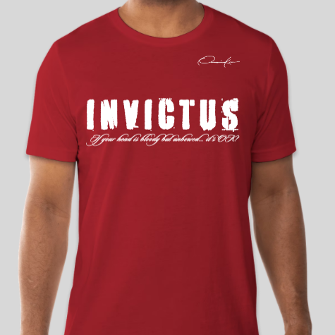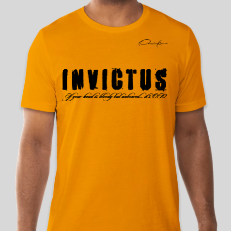 Invictus Poem by William Ernest Henley T-Shirt by Onassis Krown in cool greek fraternity colors for Alphas, Omegas, Kappas, Sigmas and Iotas! Be one of the first to represent! This shirt is made of great cotton quality and bright, colorful graphics on the front and company logo on the back!