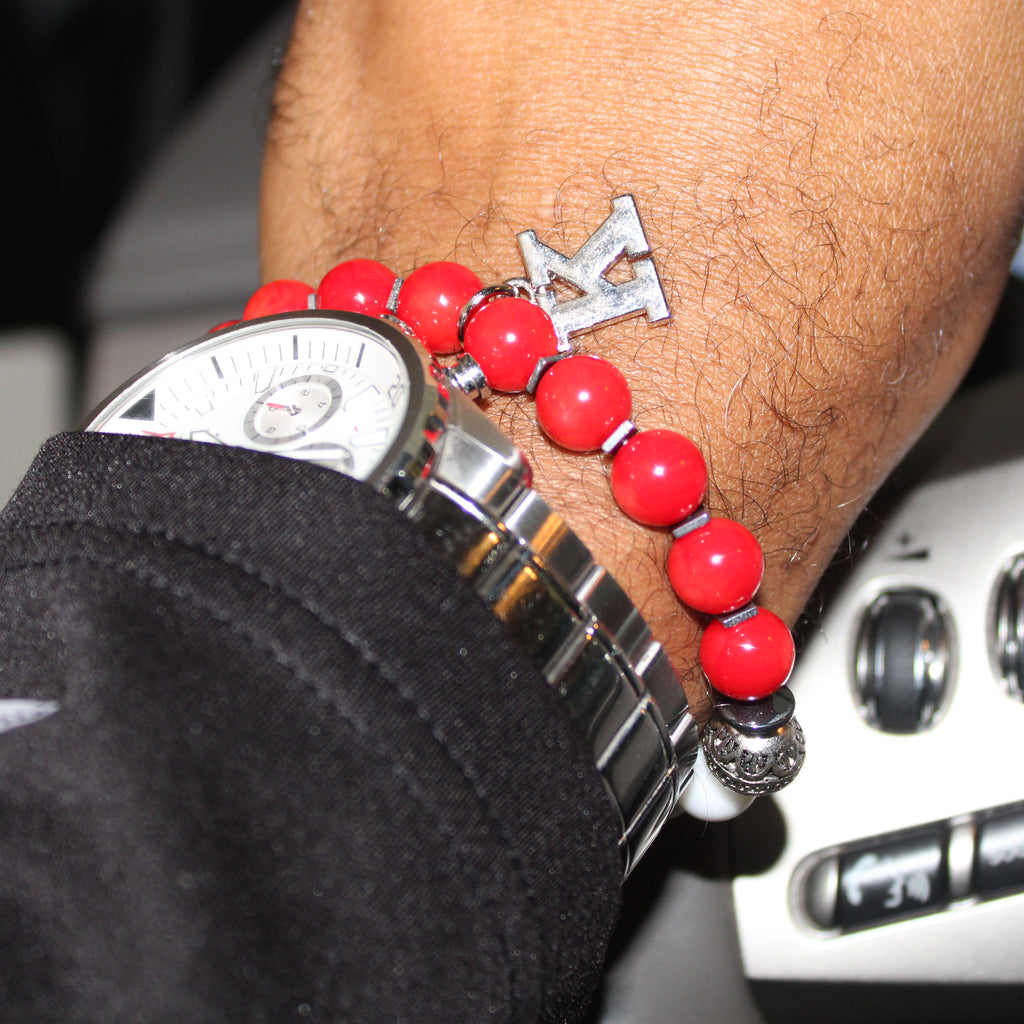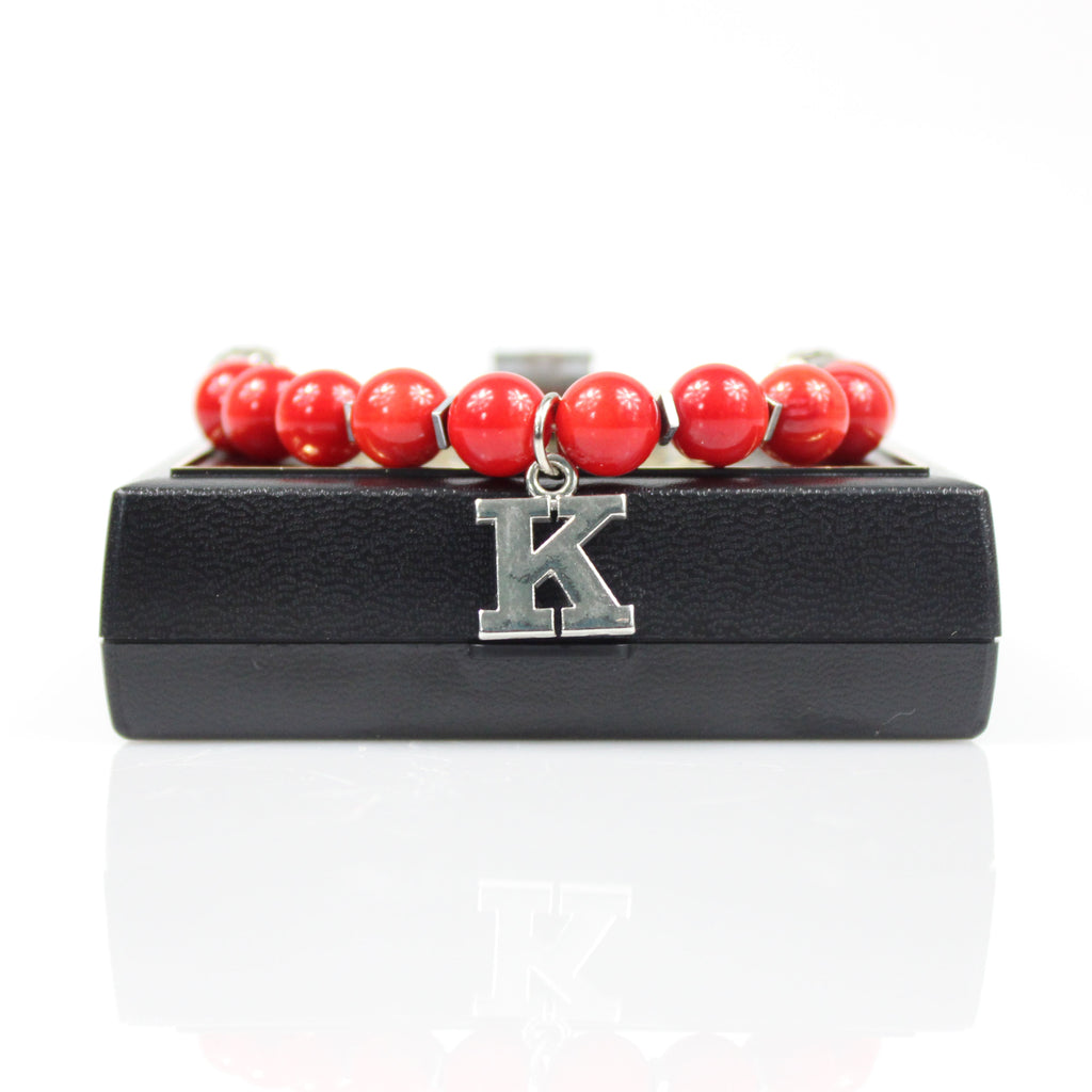 This stunning Men’s Beaded Bracelet is in honor of Kappas. You have the option of the silver greek letter Kappa charm or no pendant. One side boasts ten Crimson beads.