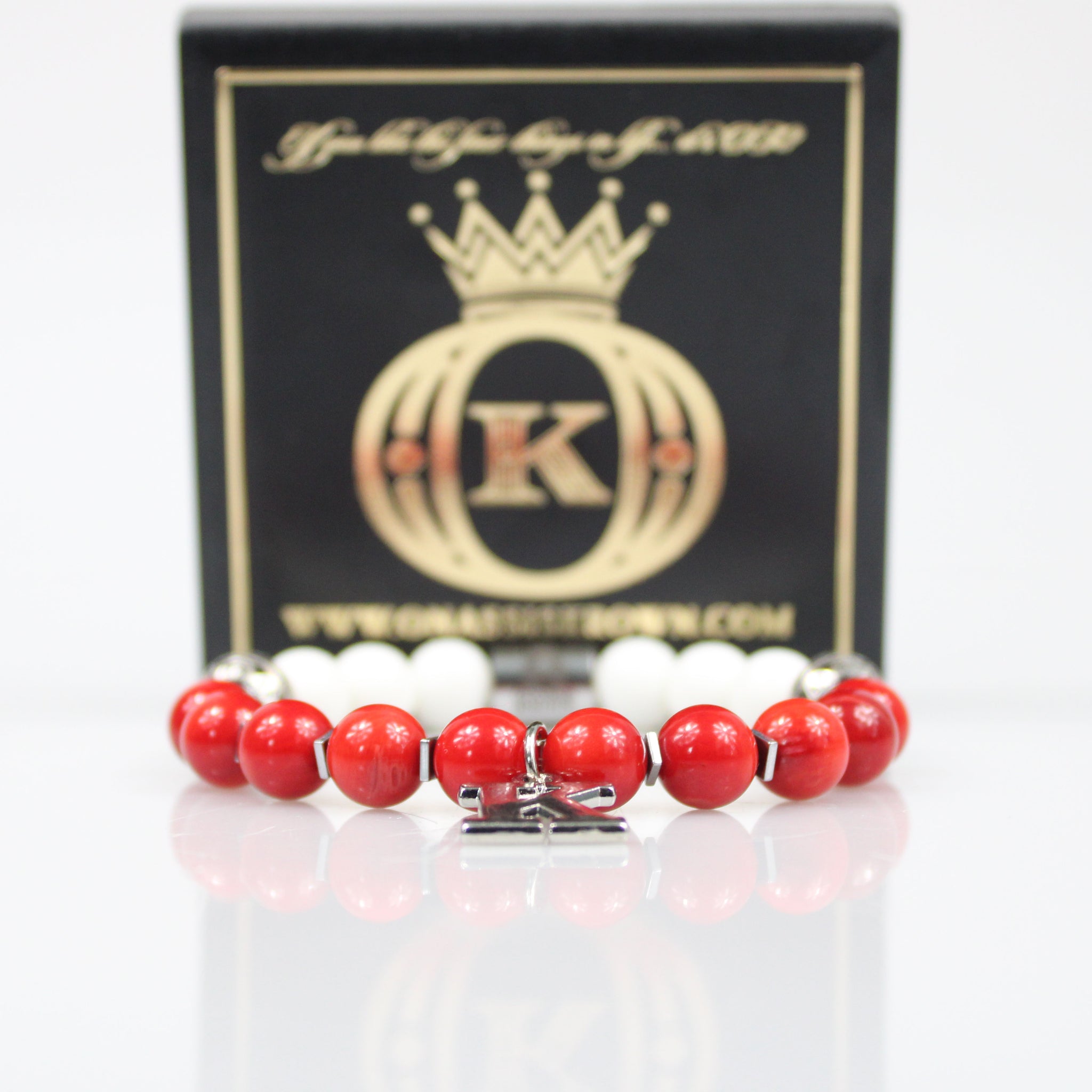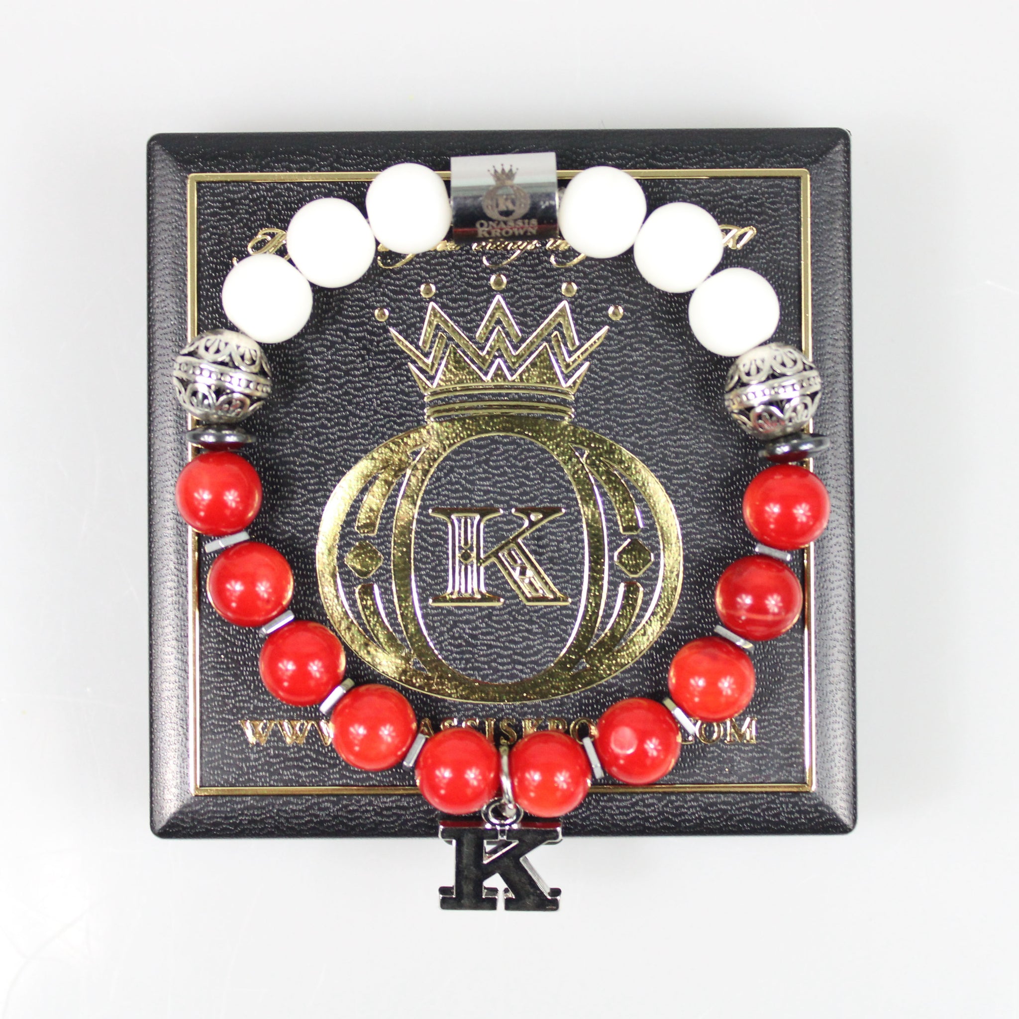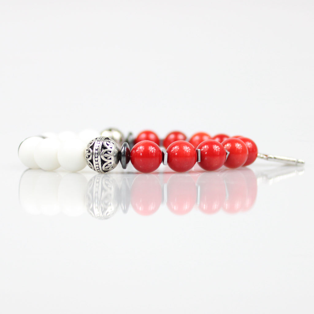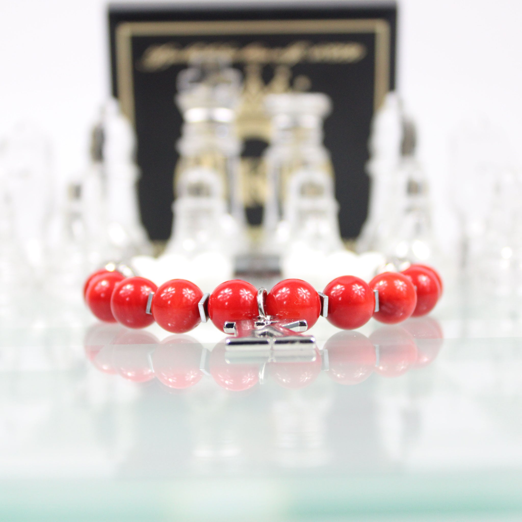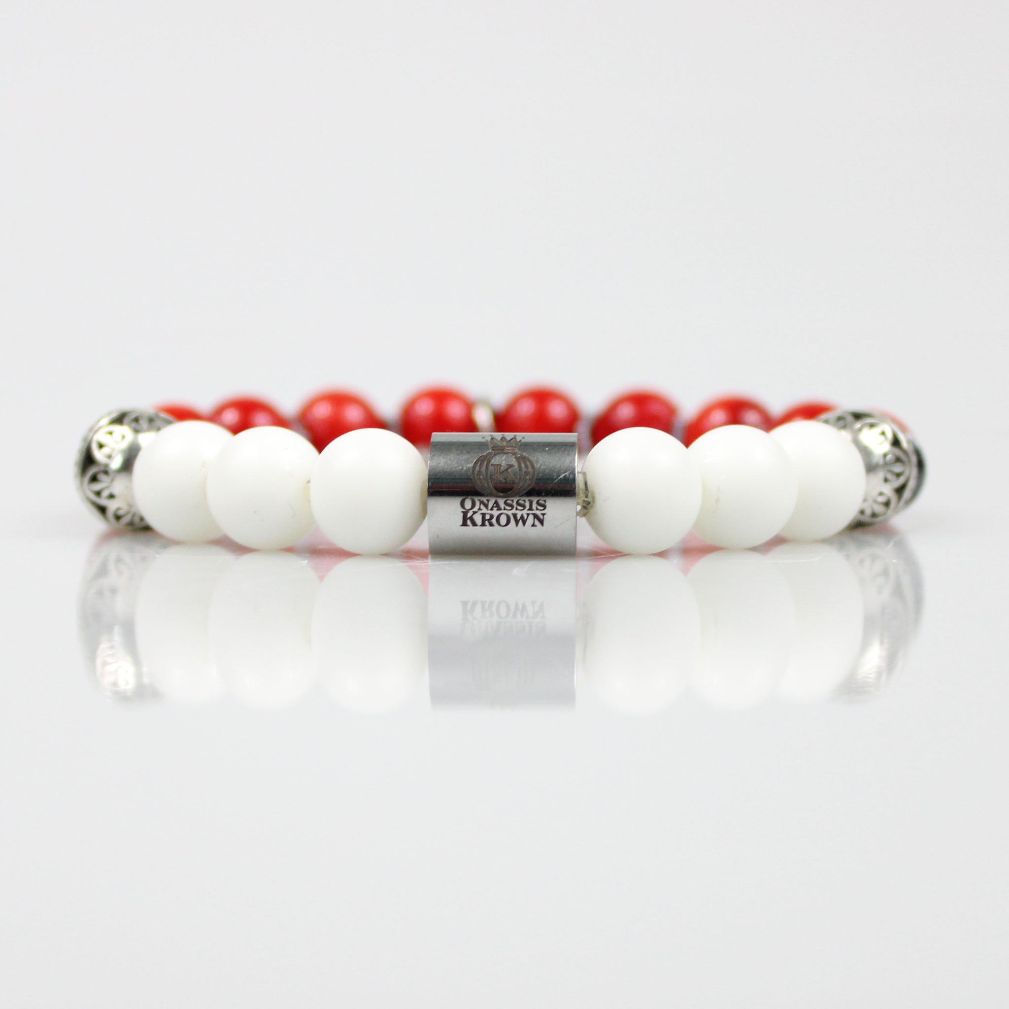 Kappa Red Bamboo Coral & White Jade Bracelet