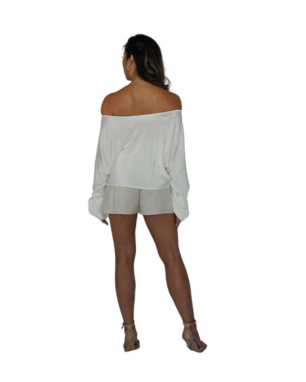 Discover timeless charm with our newest addition blouse, meet the Monaco Kelly Top. Crafted from lightweight pleated stretch material, this exquisite long sleeve top effortlessly drapes to accentuate your curves with unparalleled grace. Its oversized romantic bell sleeves adds a touch of sophistication to any ensemble.