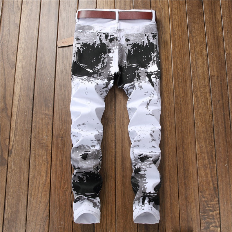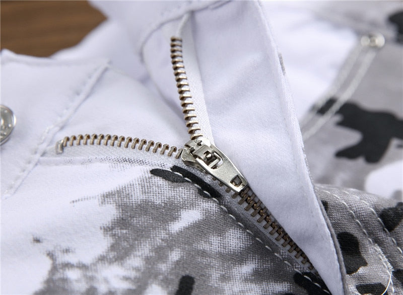 For the real street swagger person, these gray, black & white urban camouflage jeans will surely help you stand out in the crowd! Match these with a fresh, clean all white pair of Air Force I's, a gray and black Onassis Krown King T-Shirt, gray Signature Collection cap and a hematite bead bracelet and you are good to go!