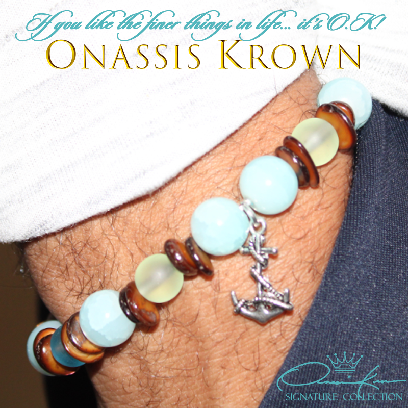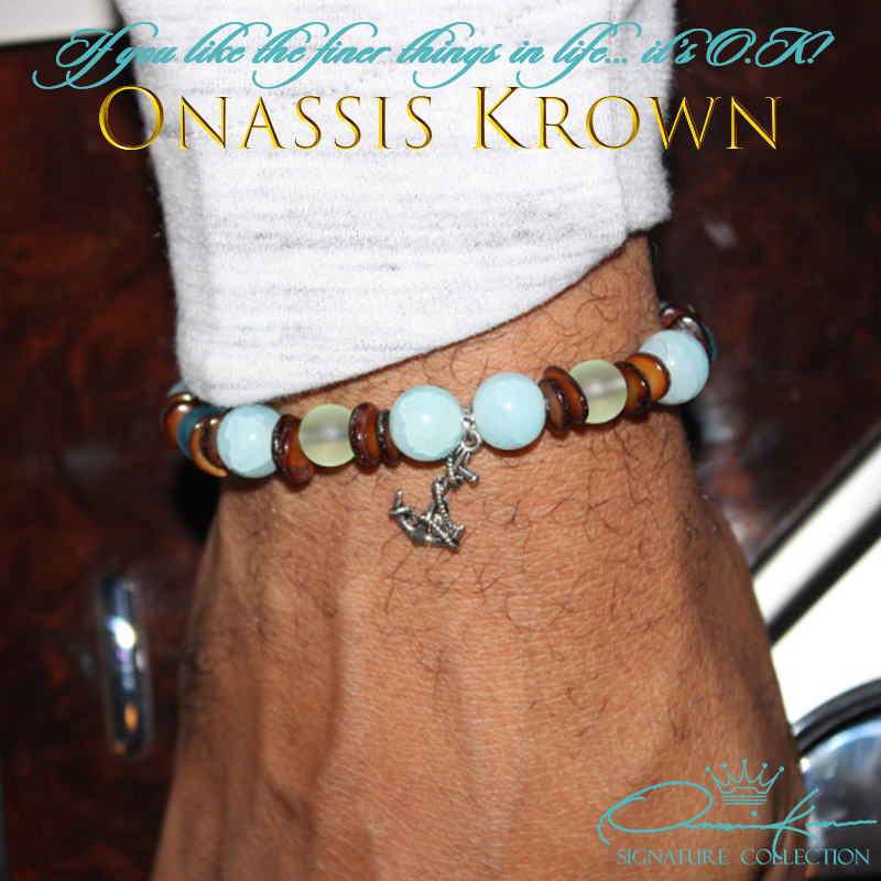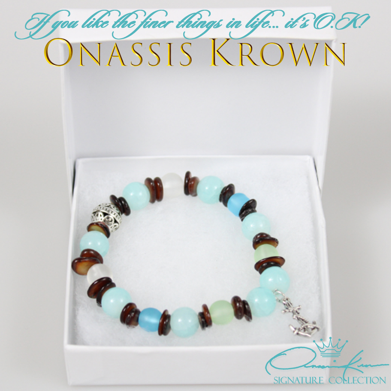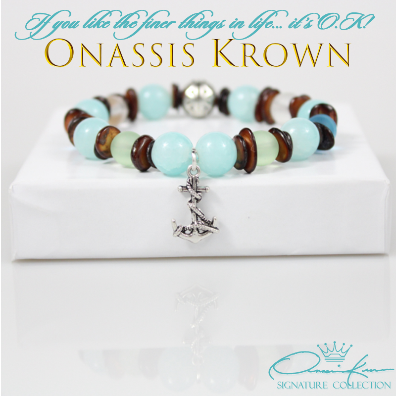 Nautical Turquoise Bracelet with a stunning combination of Semiprecious and highest quality of Agates 10mm that alternate with Brown Sea Shells, Antique Silver Carved Flower Beads and a Antique Sterling Silver Nautical Anchor.