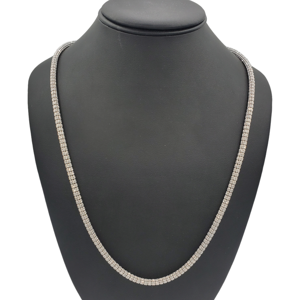 Experience the dazzling beauty of our 14K Gold Ice Chain in White Gold! This exquisite piece will effortlessly enhance your look and add a touch of luxury to any outfit. Don't miss out on this must-have accessory!