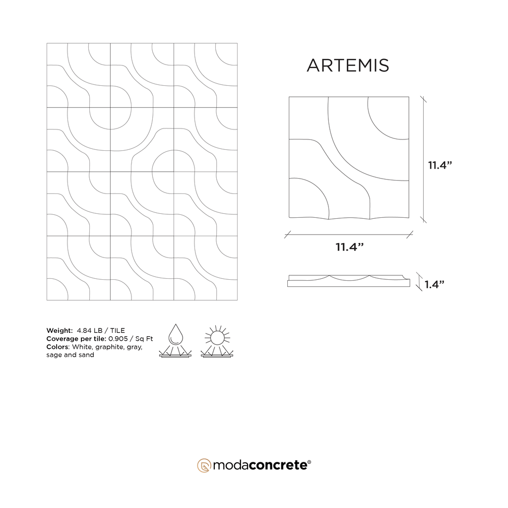 Create a calm, welcoming space with ARTEMIS Concrete Wall Tiles. This gentle, circular pattern adds a serene, nature inspired look to modern rooms, great for relaxed living rooms, bedrooms or featured accent walls. Crafted for durability, ARTEMIS tiles offer style with a relaxed, contemporary feel.