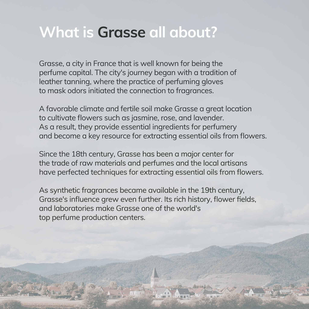 • Grasse is a city in the Provence-Alpes-Côte d'Azur region of France and it well-known as the capital of perfume, where its scent was designed by a local "Nose"