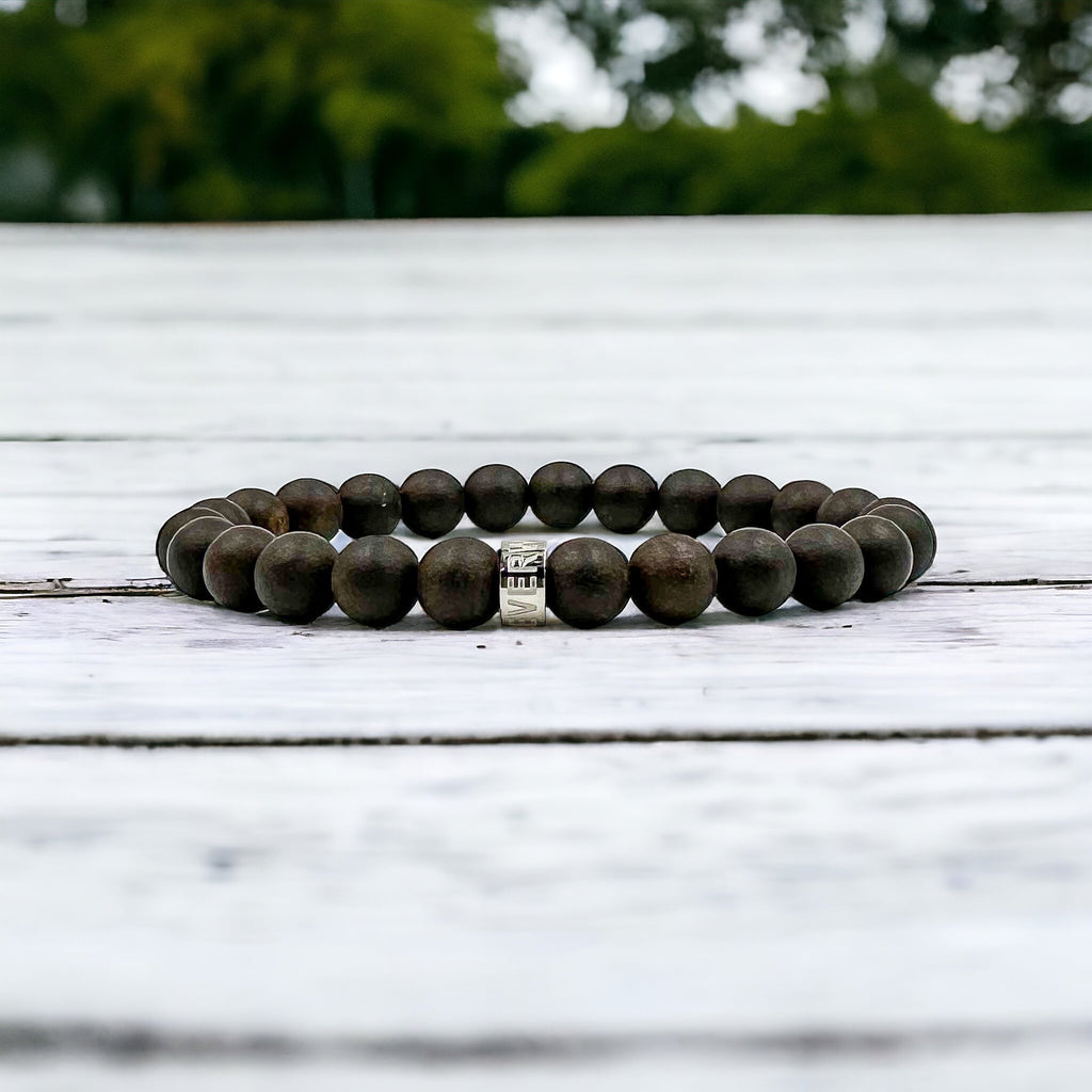 Dark, dense, and refined. Blackthorn features matte Black Sandalwood beads, reminiscent of charred wood and ancient tools. It’s a men’s bracelet that speaks in silence — rugged, grounded, and quietly bold.