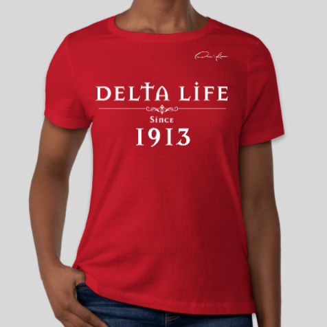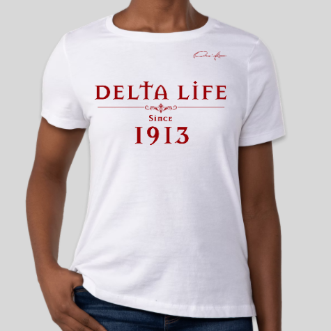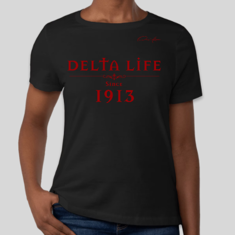 Delta Life Since 1913 shirt by Onassis Krown in Red, Black or White with the OK signature brand over the top right chest for Delta Soror ladies! "If you love sisterhood, pyramids and elephants... it's OK!" Be one of the first in your sorority, chapter or on the yard to sport this original!