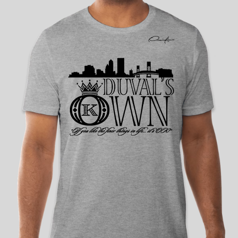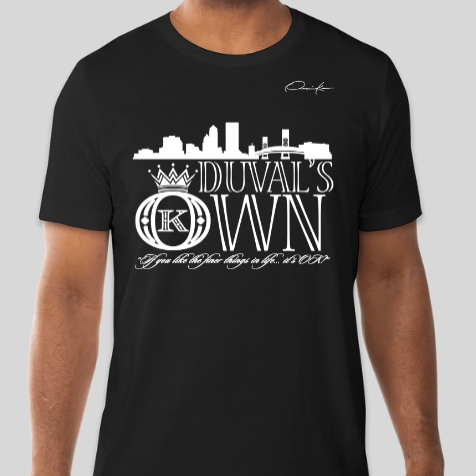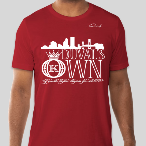 This t-shirt is representing the city of Jacksonville better known by the county name Duval. The greater metro Jacksonville area including St Johns County and Clay County represent the fastest growing areas in the nation brought to you by Onassis Krown, headquartered on the First Coast FL. This shirt is made of great cotton quality and bright, colorful graphics on the front and company logo on the back!