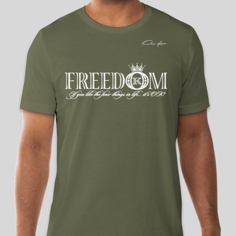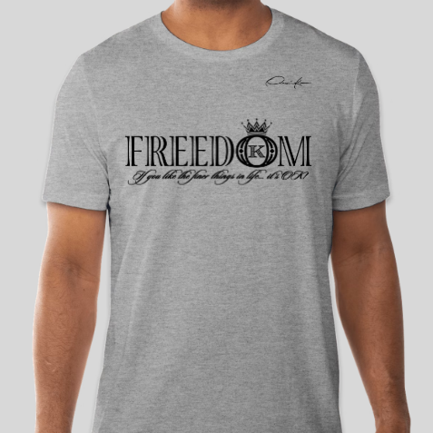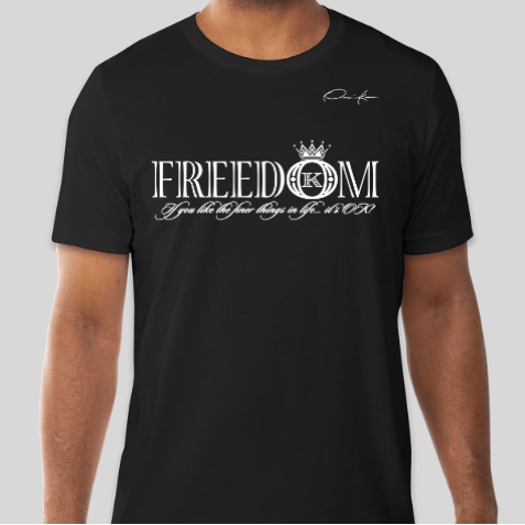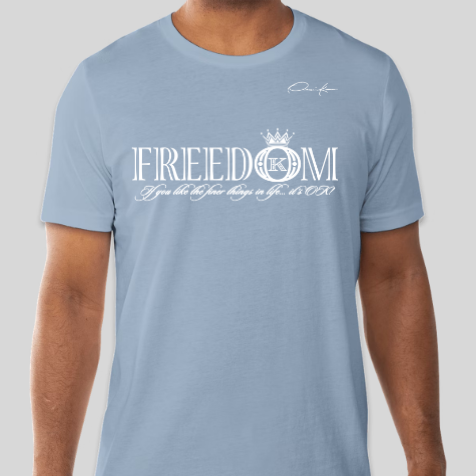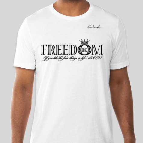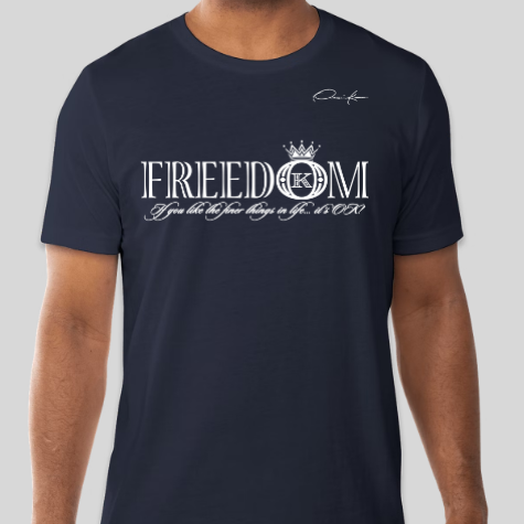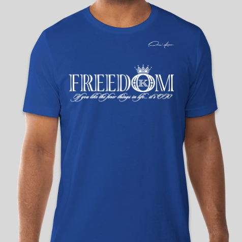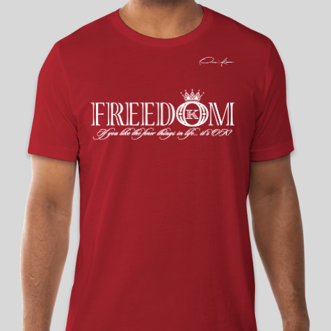 Freedom T-Shirt by Onassis Krown! This freedom shirt represents many levels of freedom from American Pride freedom to Black Juneteenth freedom. Be one of the first on your block to represent! "If you like the finer things in life... it's OK" slogan underneath with a crown logo. This shirt is certainly an icon made of great cotton quality and bright, colorful graphics on the front and company logo on the inside label!