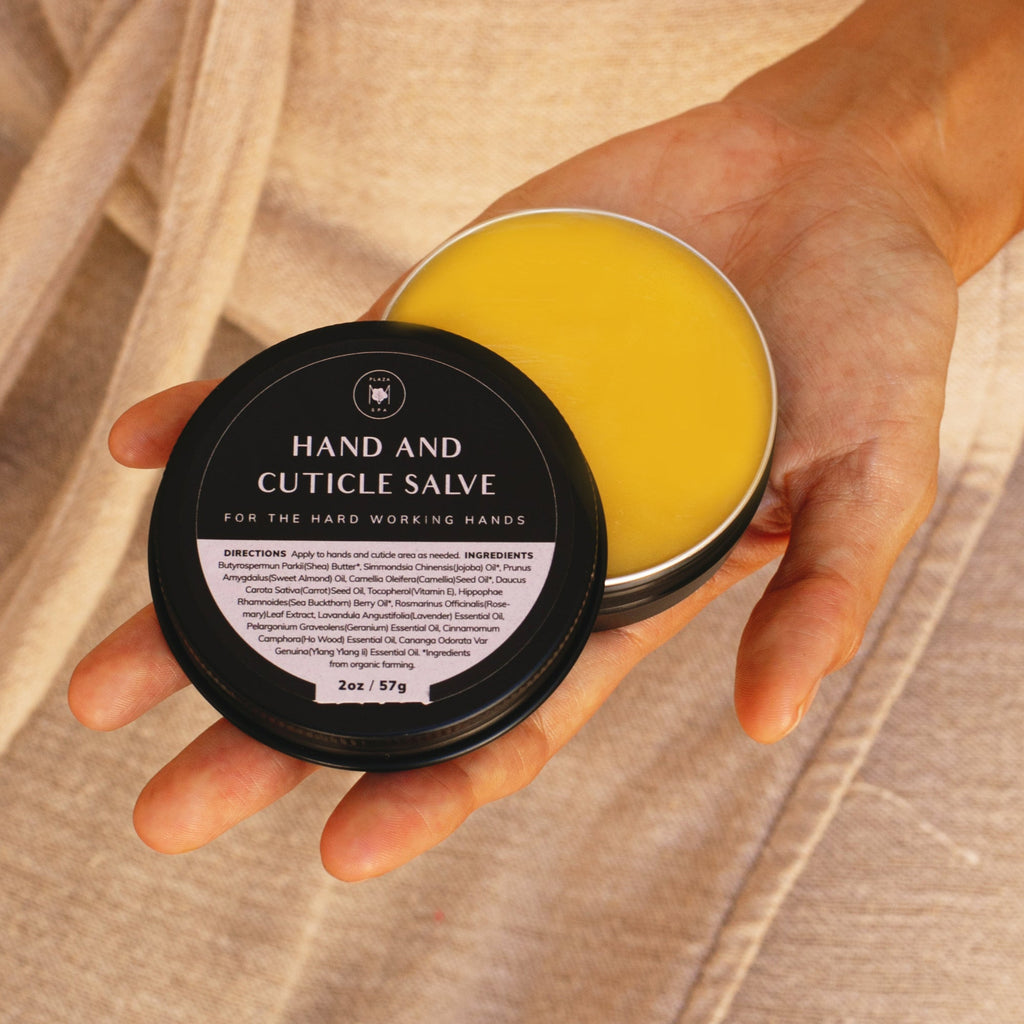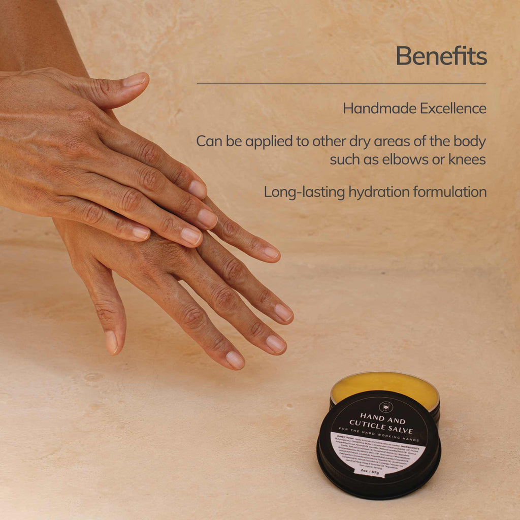 • Our hand & cuticle salve is handmade in small batches and wax-free with minimal heat processing, allowing for easier application and enhanced skin penetration.