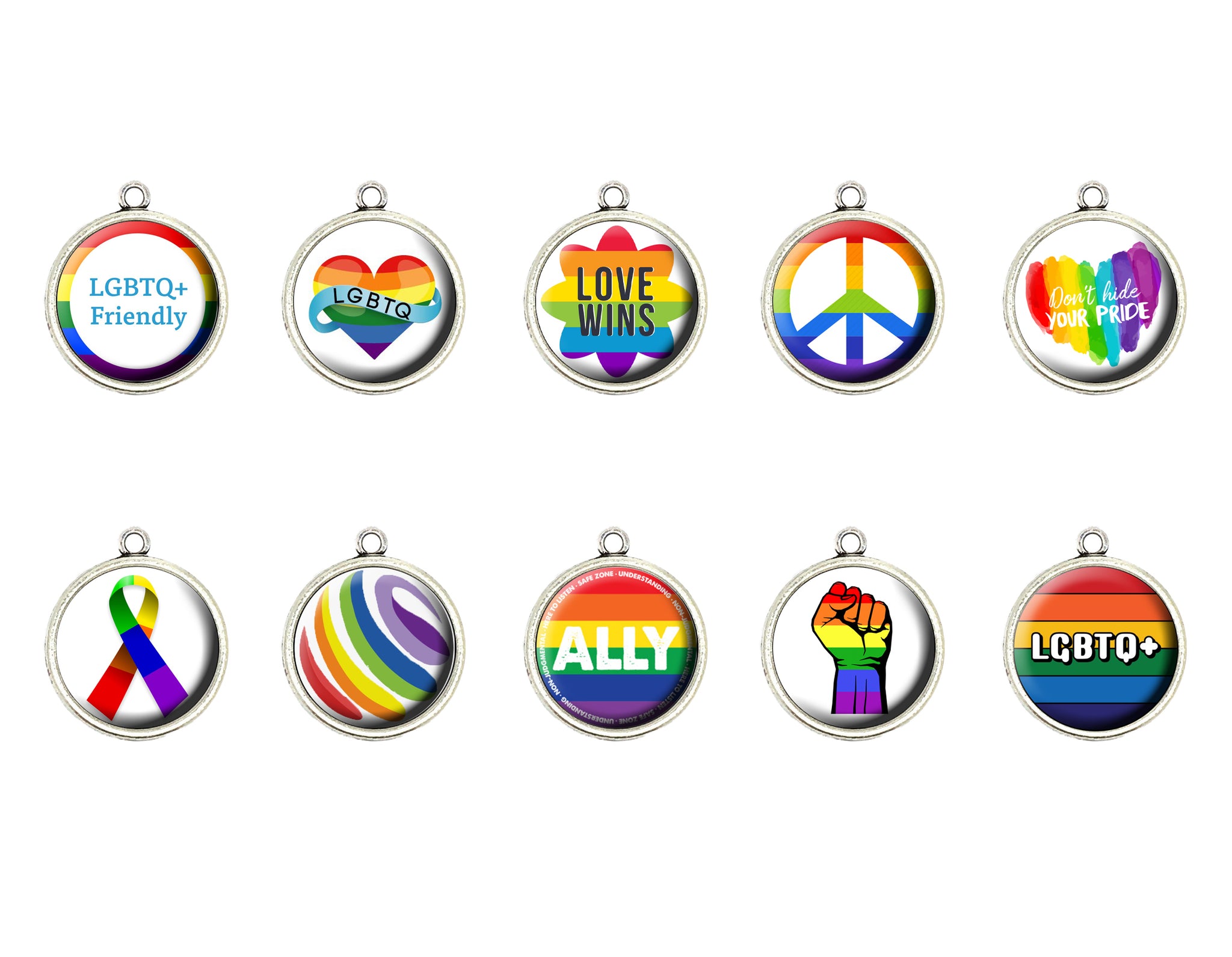 Select your favorite cabochon charm for the LGBTQ+ community, gay pride, gay ally, love wins and more! These charms are 18mm roughly the size of a penny!
