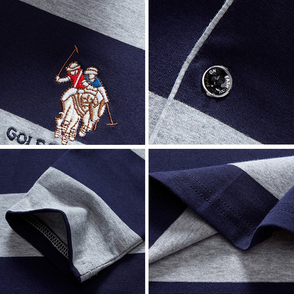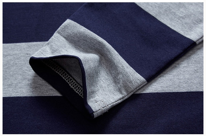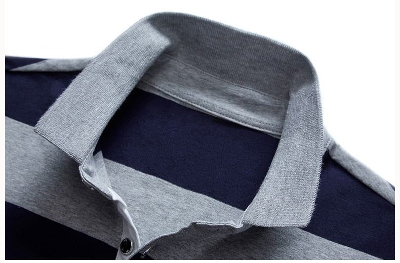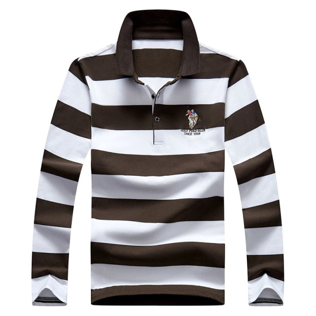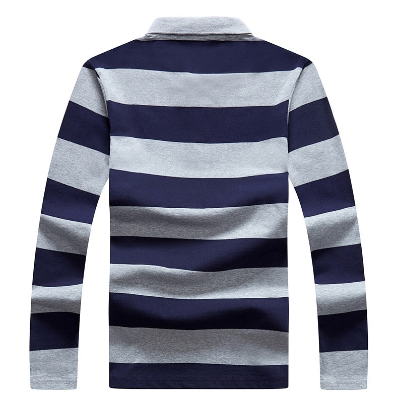 Stylish, long sleeve polo style shirts with amazing large band striped. These long sleeve tops are very comfortable with a quality neck collar and well-stitched finishes. Get your now in time for the cool weather!