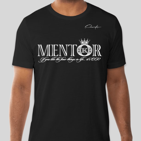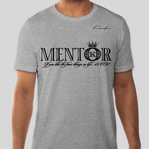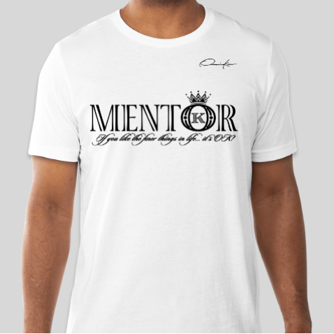 Mentor t-shirt with the official Onassis Krown signature on the front chest over the heart and vertical, angel wings spinal cord "WEAR YOUR KROWN" logo on the back. A mentor is known as an experienced and trusted adviser. If you don't see the Onassis Krown label on the inside then it's NOT official! "If you like the finer things in life... it's OK!" This shirt is made of great cotton quality and bright, colorful graphics on the front and company logo on the back!