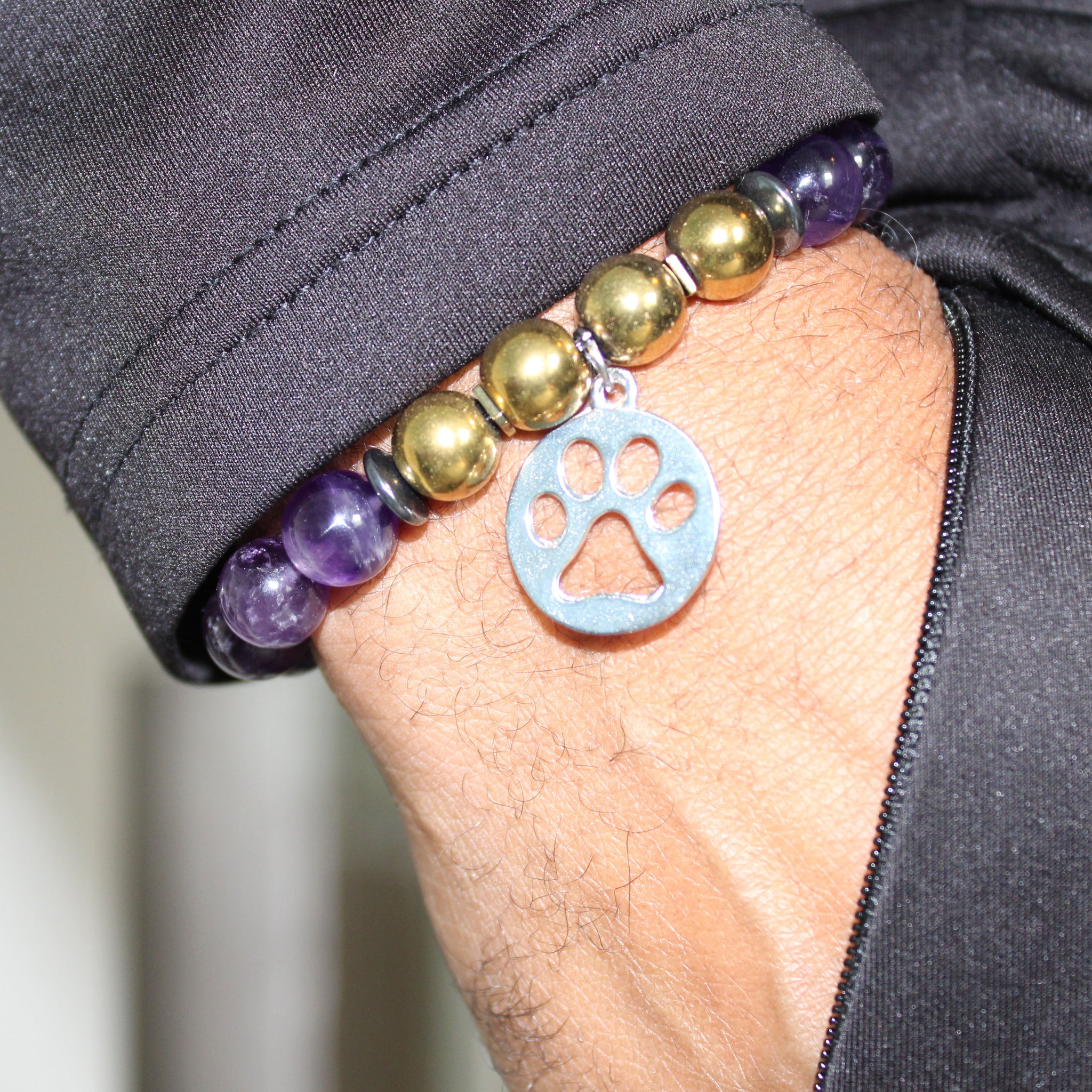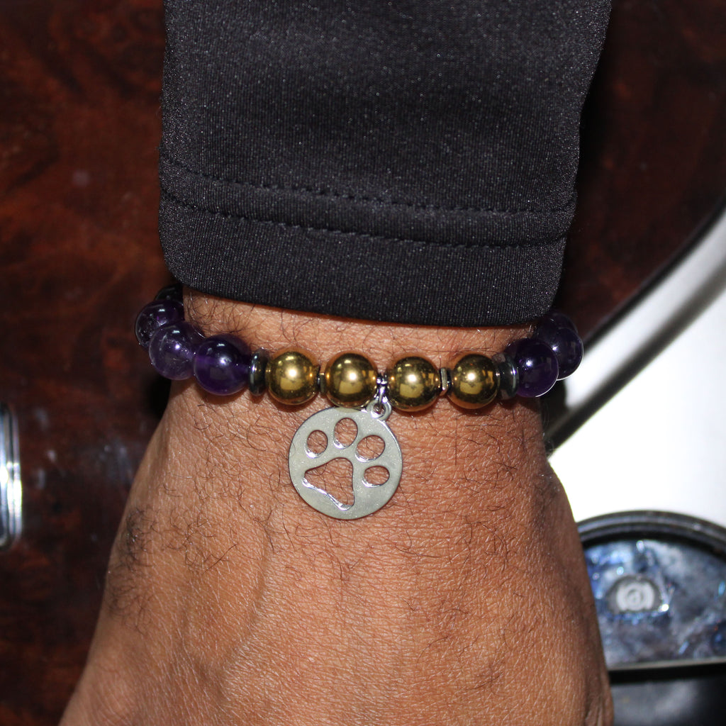 This stunning Men’s Beaded Bracelet is in honor of the Omegas. You have the option of the Lamp Pendant, the Dog Paw Pendant or no pendant. One side boasts four gold metallic beads that represent the four founders of the organization.