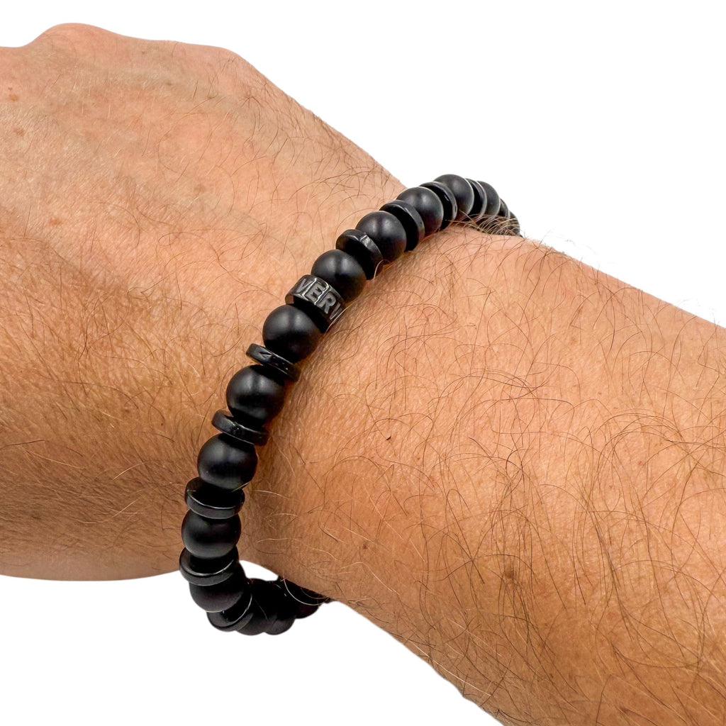 Built for the man who moves in silence—but never goes unnoticed. This version of the Pulse bracelet features all-black everything: matte black onyx, ebony blackwood, and a black steel spacer bead engraved with the Everwood mark. Subtle, tactical, and clean, this piece is all about presence without noise. It’s the kind of gear you wear daily—whether you're off-grid, in the zone, or on your grind.