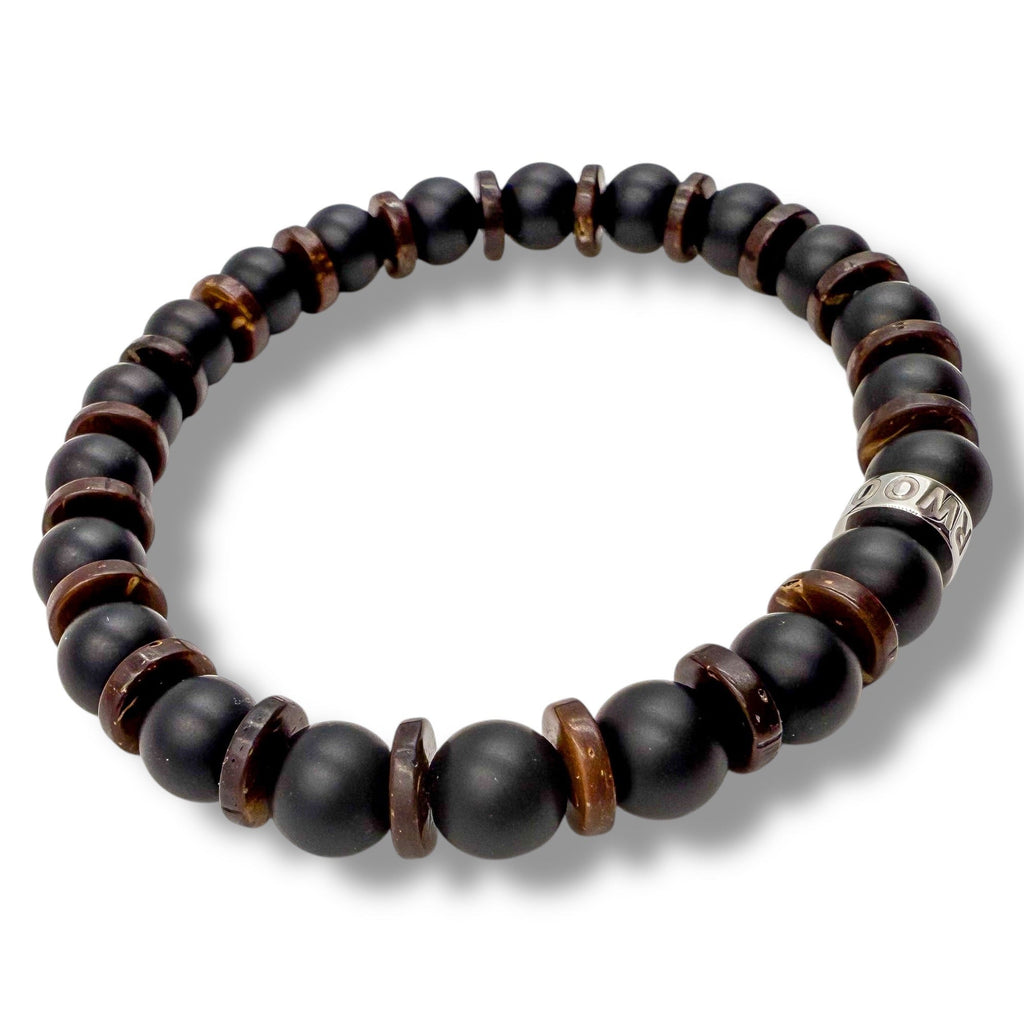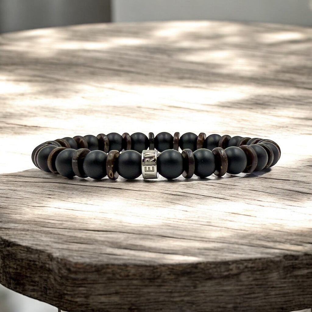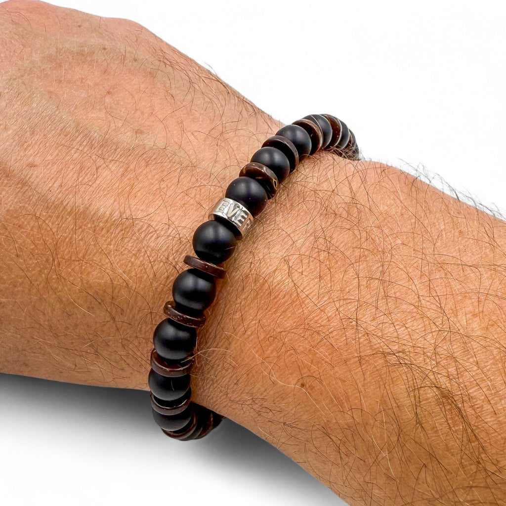 - Premium 8mm Matte Black Onyx and Brown Coconut Beads: Carefully selected for their distinctive texture and durability.