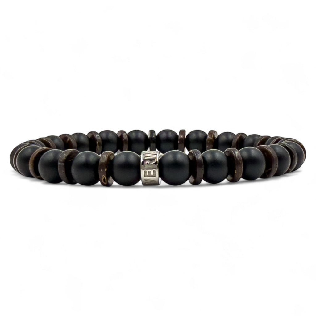 Where city grit meets natural grit. The Blacktop Timber bracelet fuses the bold, matte finish of black onyx with the raw texture of brown coconut wood beads, creating a look that’s clean, grounded, and effortlessly cool. Anchored by a polished silver stainless steel spacer engraved with the EVERWOOD mark, this piece is built for the man who moves between concrete and wilderness without missing a beat. From office hours to after hours, Blacktop Timber is your go-to for low-key confidence and high-style impact.