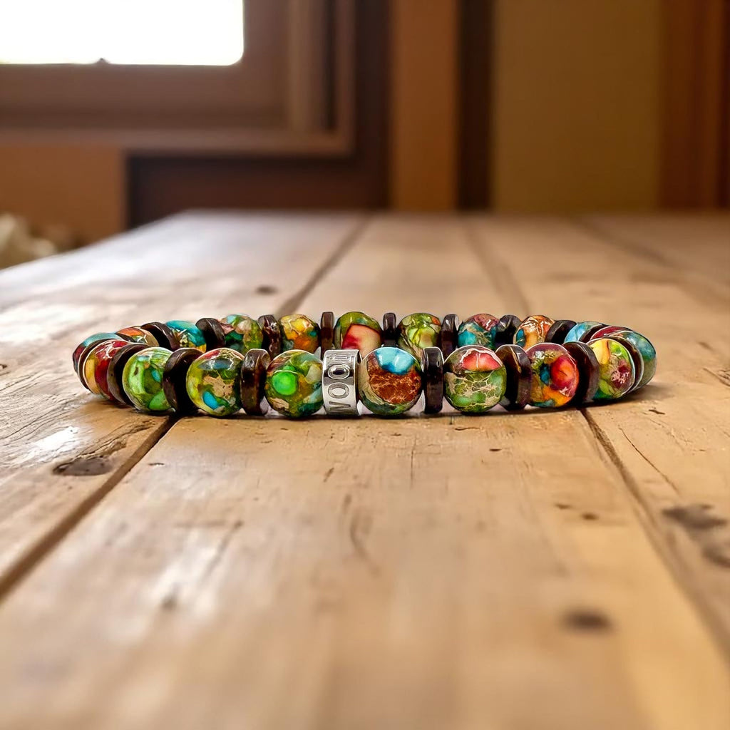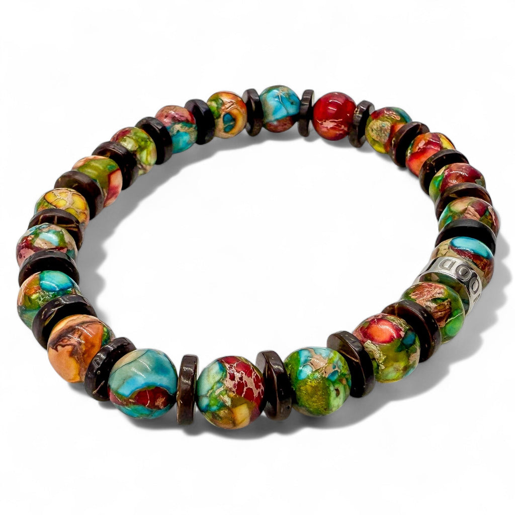 • Premium 8mm Rainbow Jasper and Brown Coconut Beads: Carefully selected for their distinctive texture and durability.
