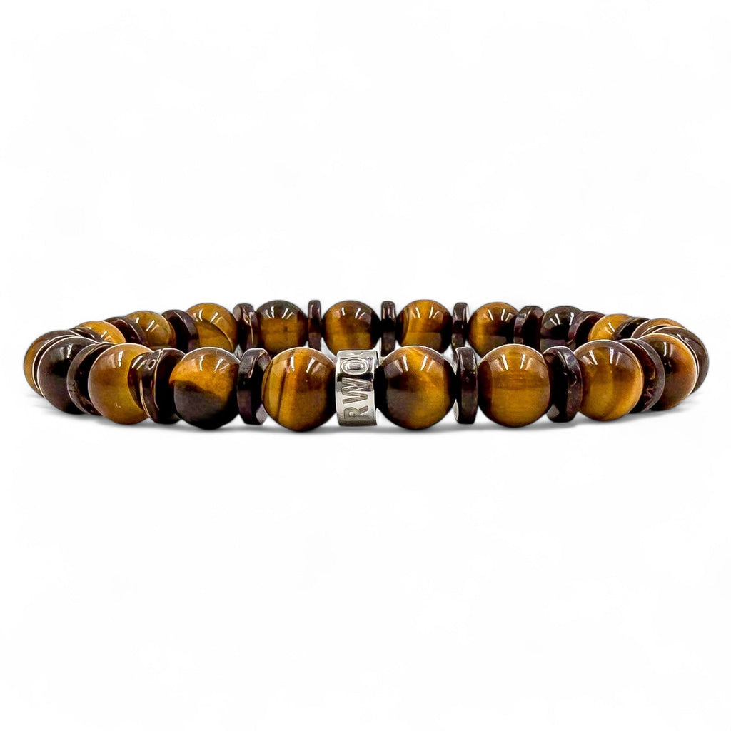 Power in every detail. The Tiger Shadow bracelet strikes the perfect balance between raw energy and natural calm. Featuring golden-brown tiger’s eye beads that flash with light and movement, paired with warm brown coconut wood for an earthy contrast, this piece brings a quiet intensity to your wrist. Finished with a polished stainless steel spacer engraved with the EVERWOOD name, it’s a bracelet built for strength, focus, and style. Whether you’re on the hunt or just keeping it cool, Tiger Shadow keeps you sharp.