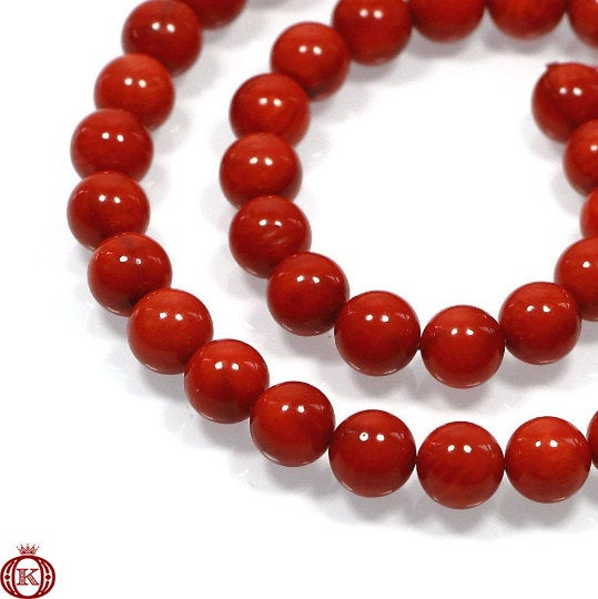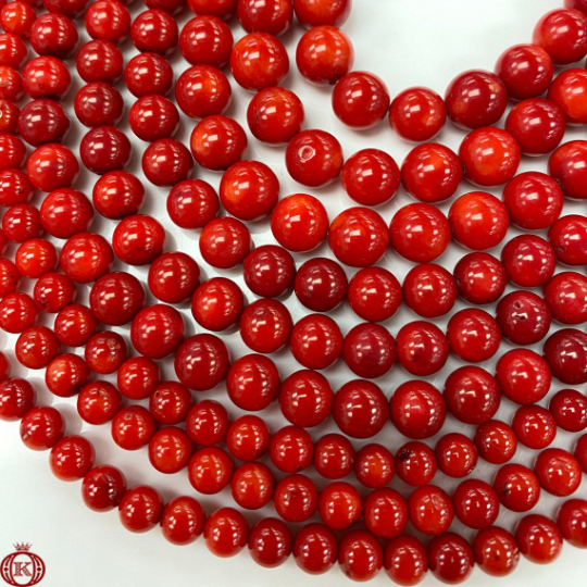Red Bamboo Coral Beads Smooth Round