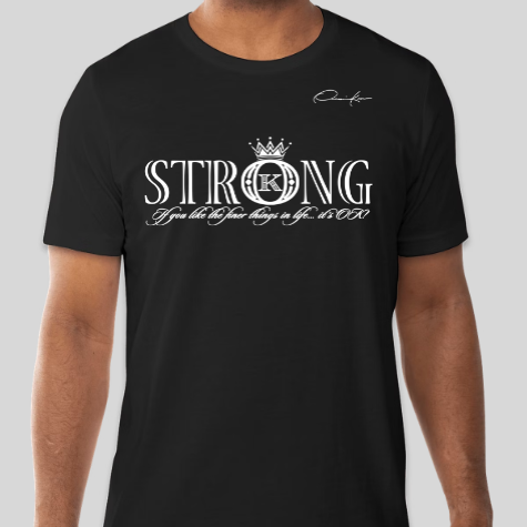 Strong motivational T-Shirt with the official Onassis Krown signature on the front chest over the heart and vertical, angel wings spinal cord logo on the back. If you don't see the Onassis Krown label on the inside then it's NOT official! "If you like the finer things in life... it's OK!"