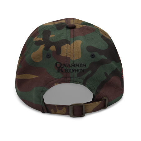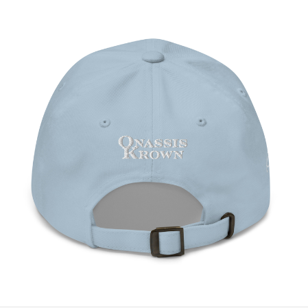The back of cap has flat embroidered Onassis Krown brand and the right side of cap features the OK signature! All caps come in black & gold gift box!